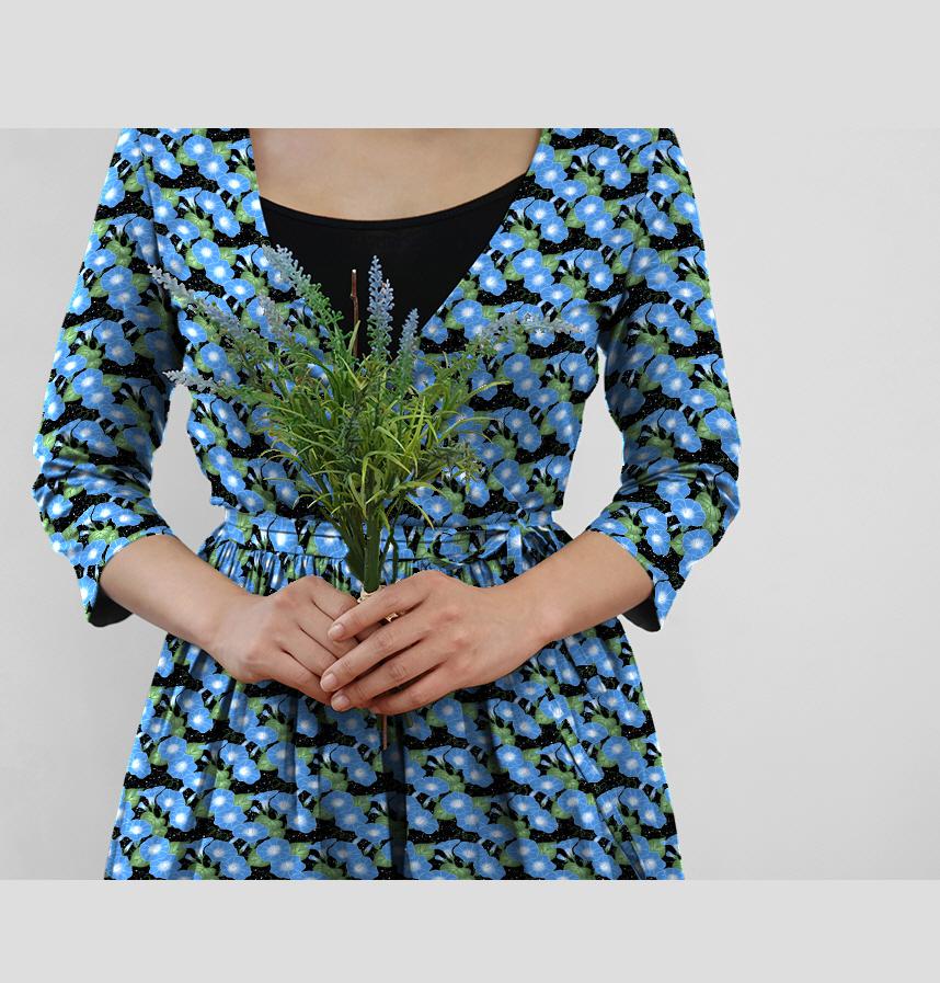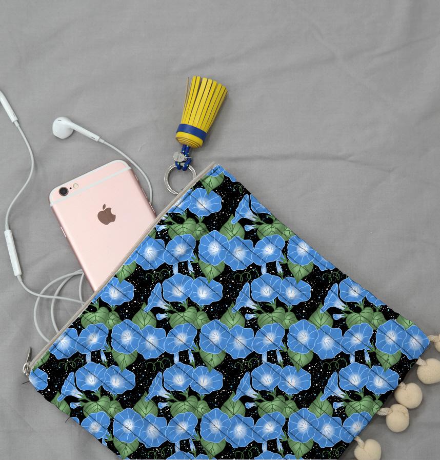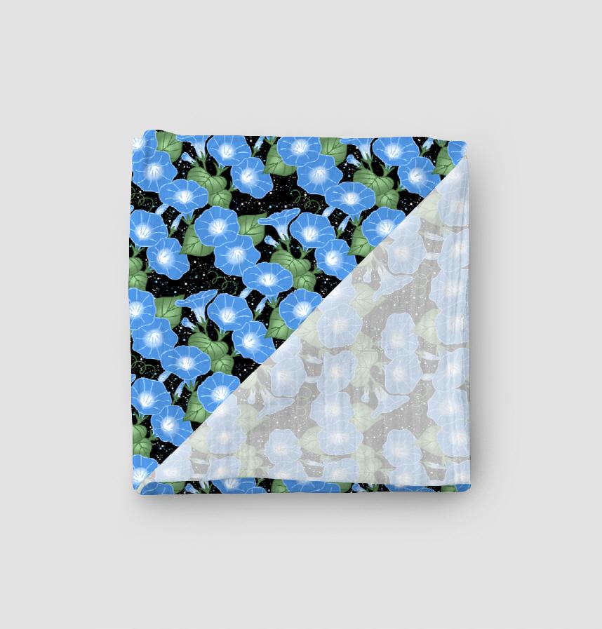 青い朝顔のさわやかな姿をモチーフにデザインしたパターンです。