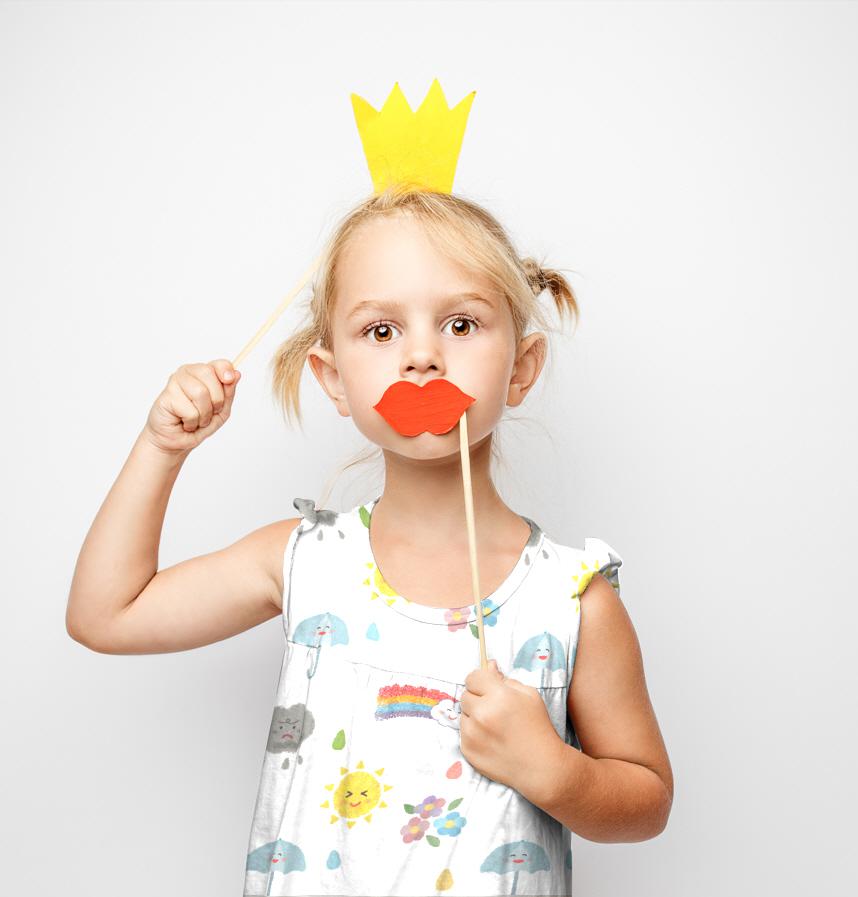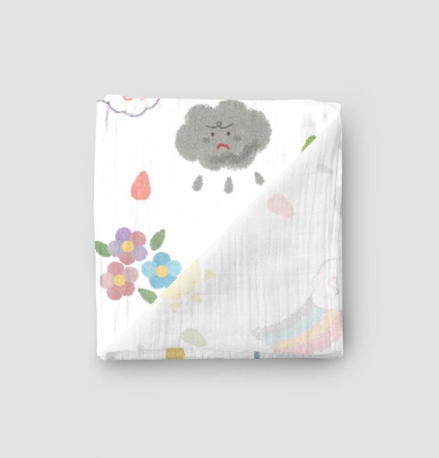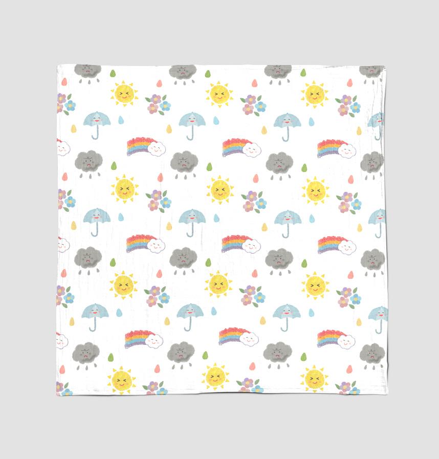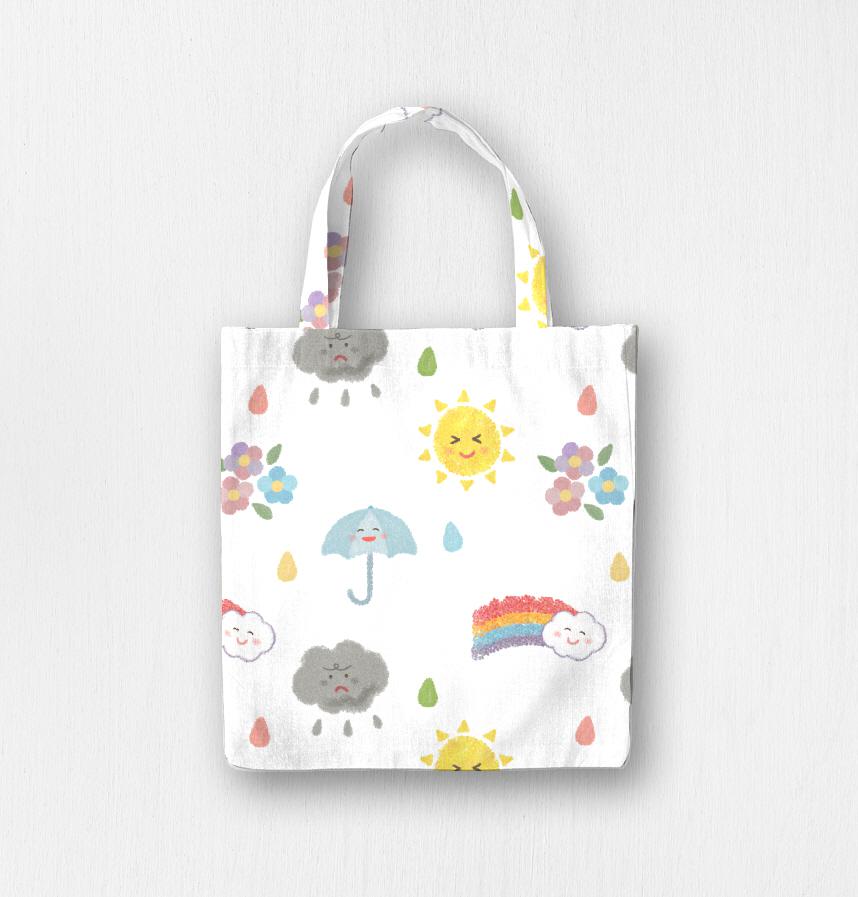 パターン説明 雨上がり、澄み切った空。今日の天気、晴れ。お子様用エプロンなど、かわいい小物に活用するのに最適です。