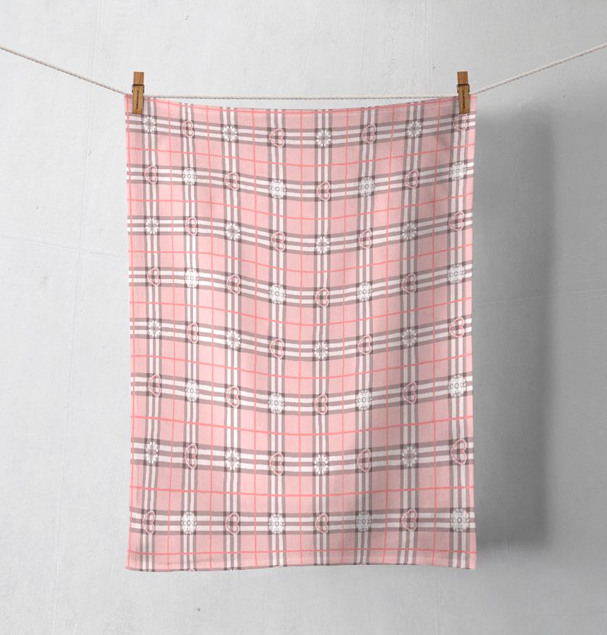 チェックパターンとハートレース模様の調和のとれたデザイン。