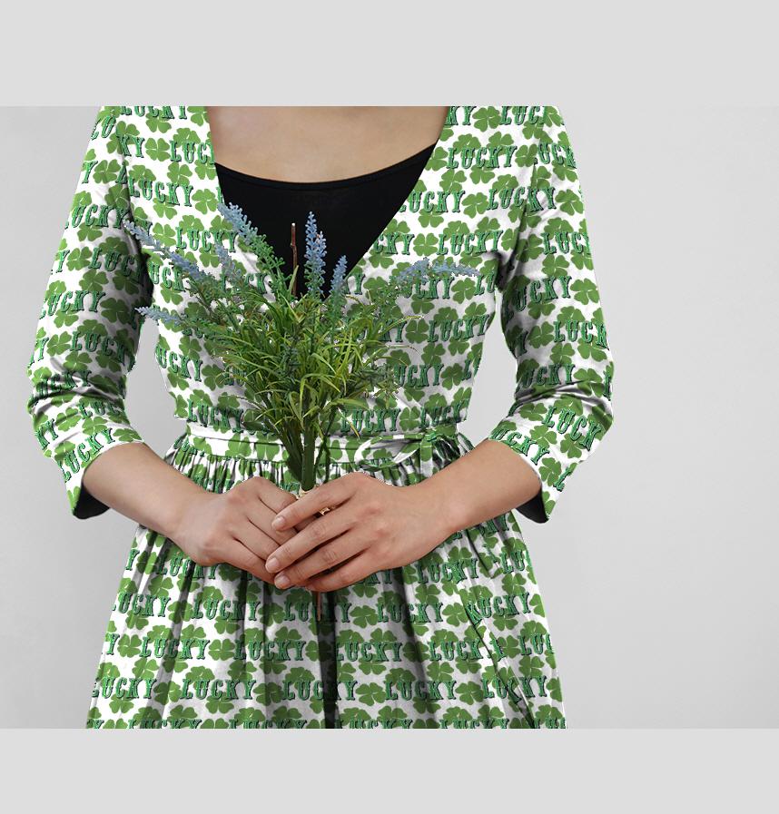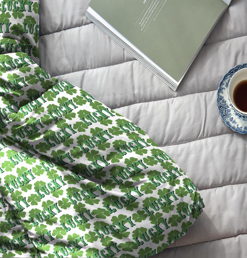 パターン説明 レタリングが施された四つ葉のクローバーパターン