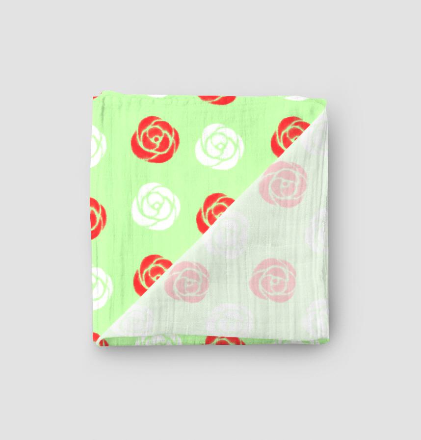 パターン名 ヴィンテージ バラ パターン(黄緑+鮮やかなレッド)