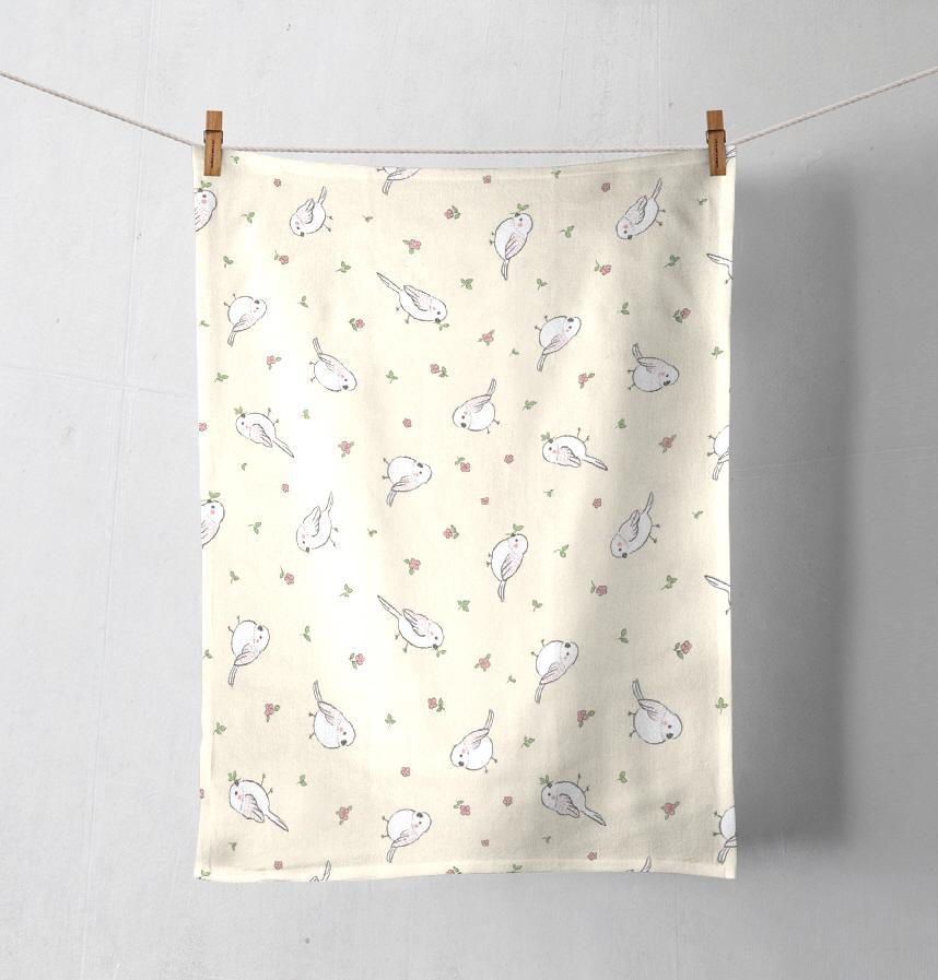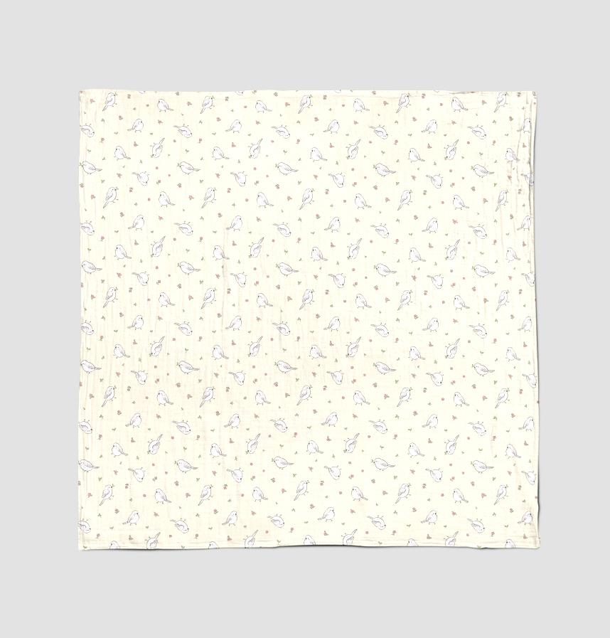 小さな白い鳥と花をモチーフにした赤ちゃんのパターン。