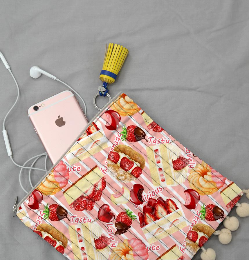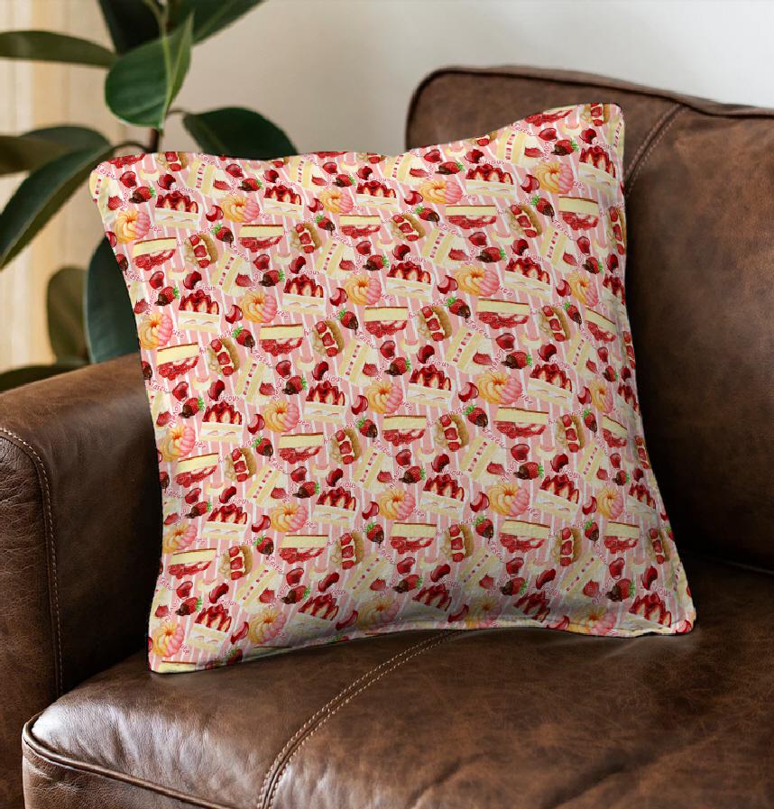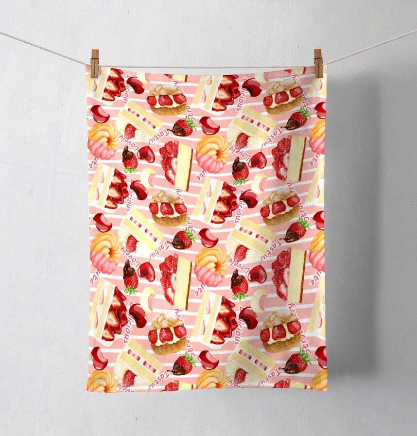 リアルタッチで描いた苺スイーツをちりばめたパターンです。