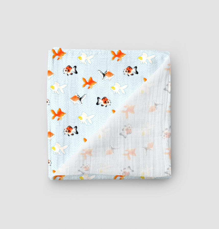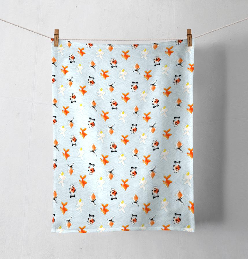 パターン説明 日本の伝統紋様である鮫小紋と金魚のデザイン