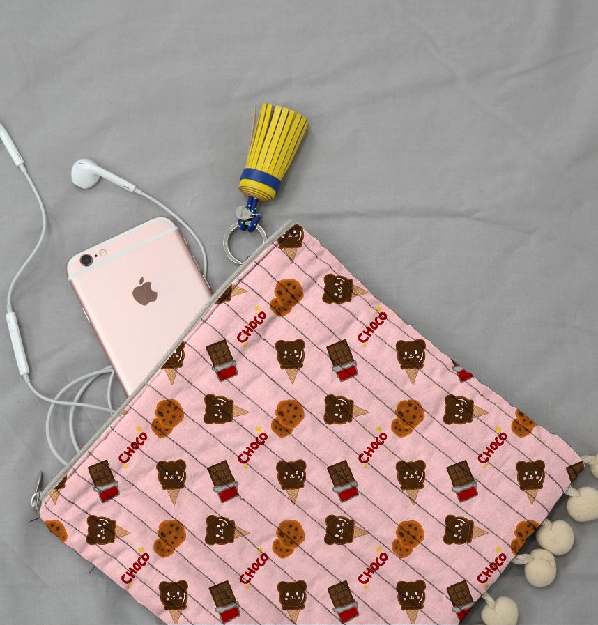 クマのキャラクターとチョコレートをモチーフにしたデザインパターン。