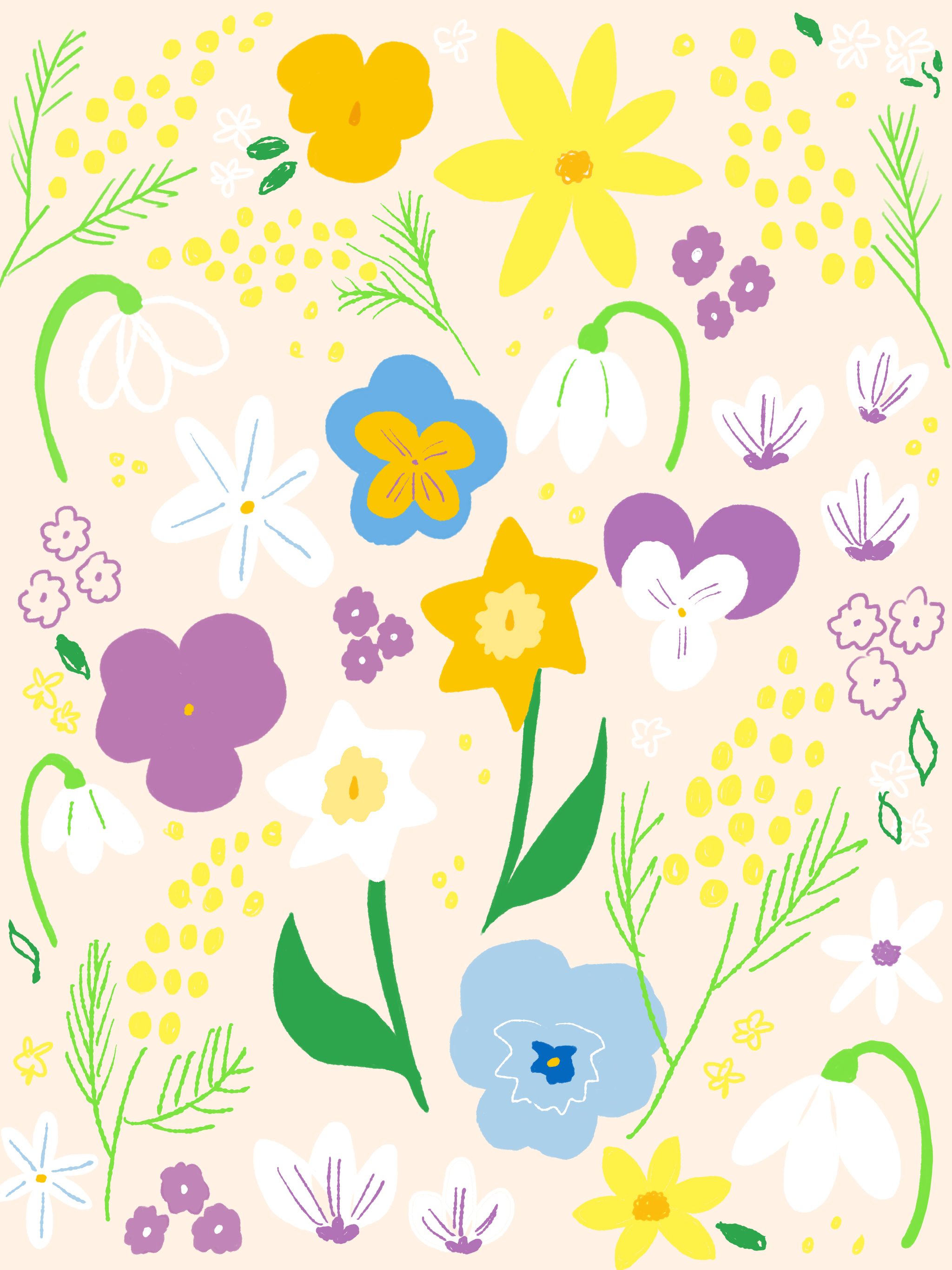 パターン説明 2月に咲くお花を参考にお花模様を描きました。