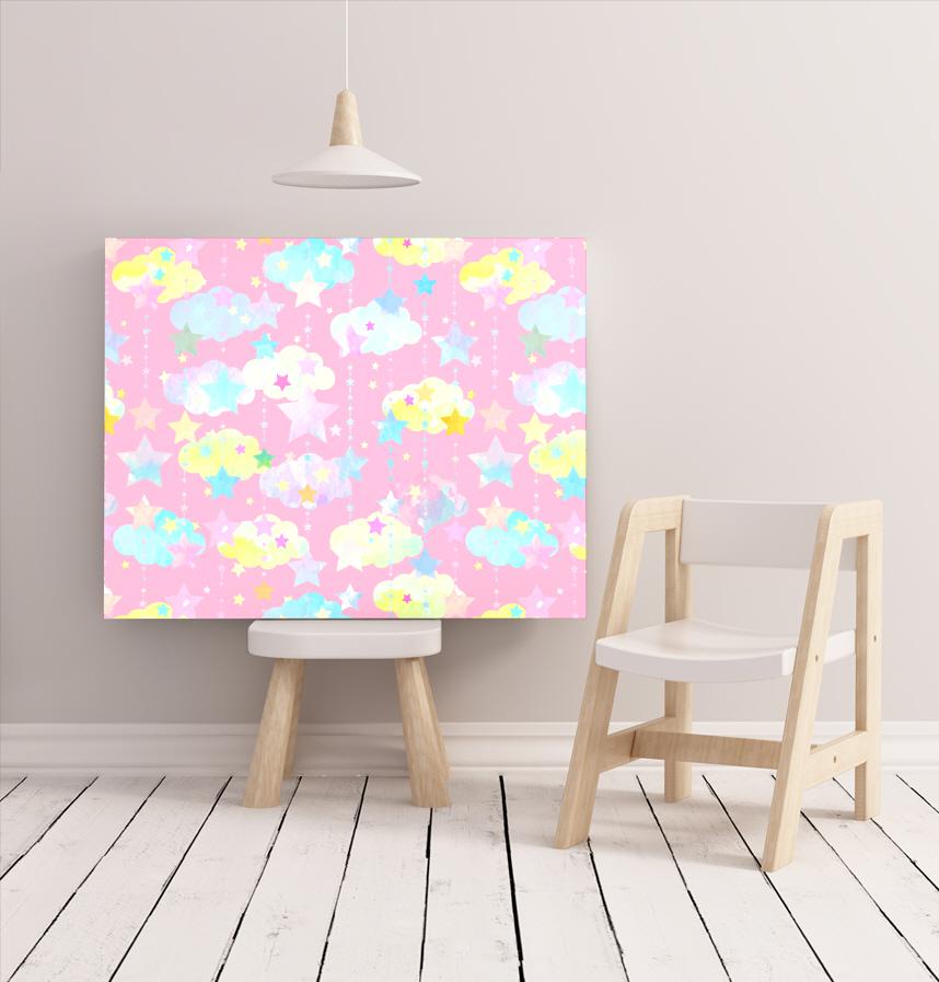 星と星雲をカラフル水彩調のかわいい柄にしました。