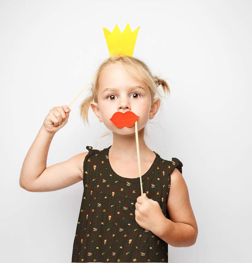 クリスマス感覚のチェック背景に赤ちゃんのオブジェが置かれている素敵なパターン