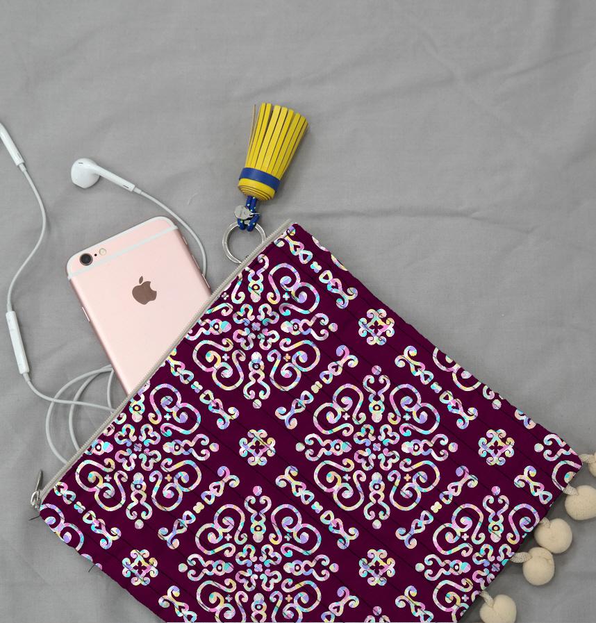 パターン説明 螺鈿と伝統文様をモザイクを活用して再解釈したデザインです。