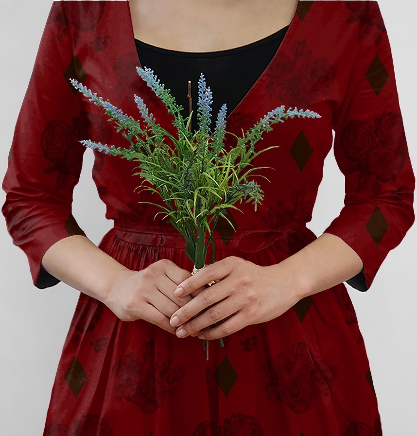 パターン説明 薔薇のデッサンとひし形を組み合わせた花柄です。