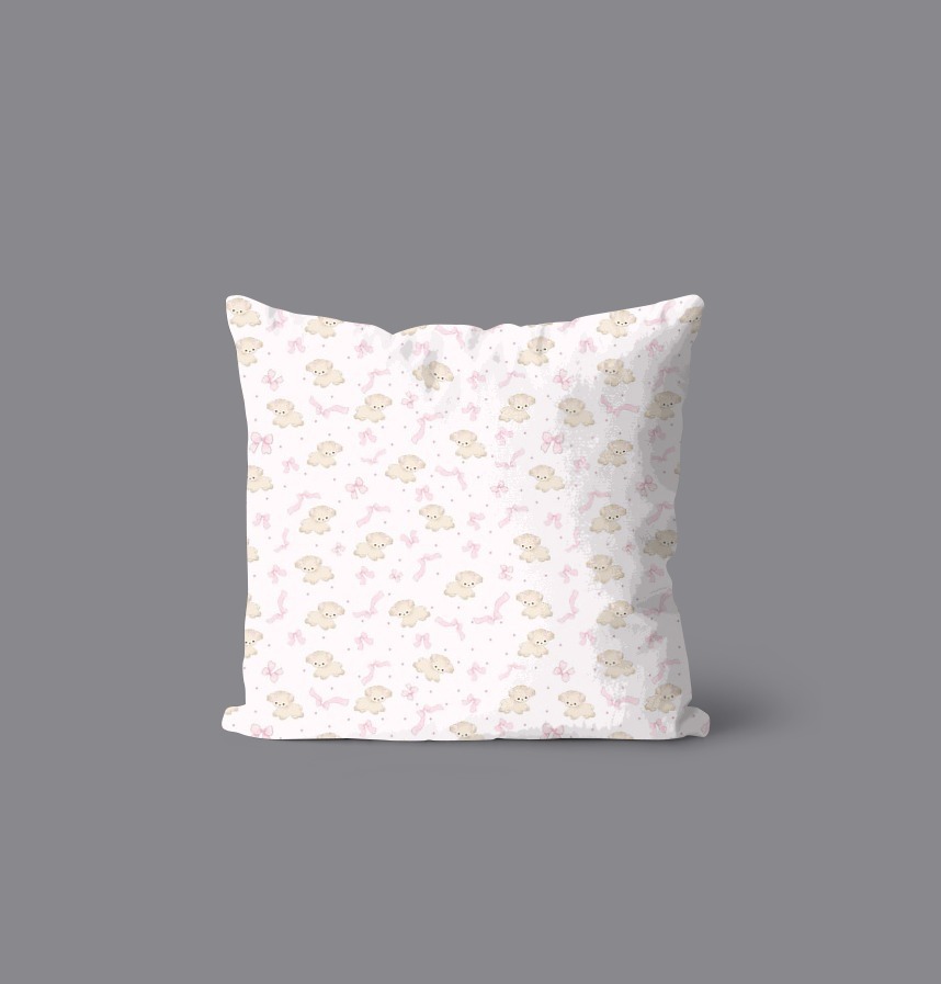 パターン説明 かわいい子犬とピンクのリボンが調和したパターン