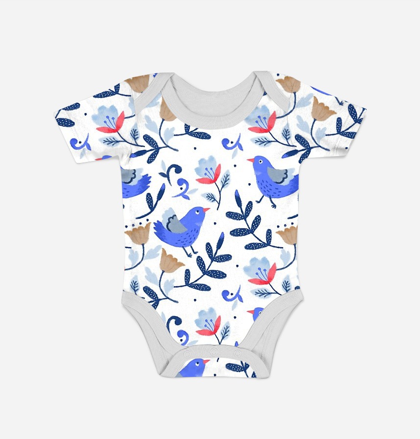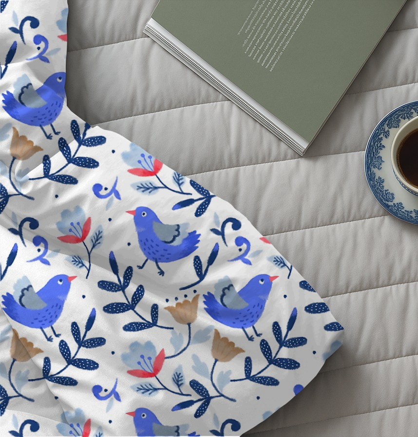 パターン説明 庭の中を自由に飛び回る小鳥たちをモチーフにしたパターンです。