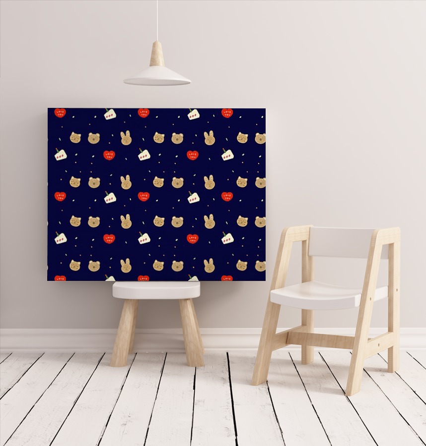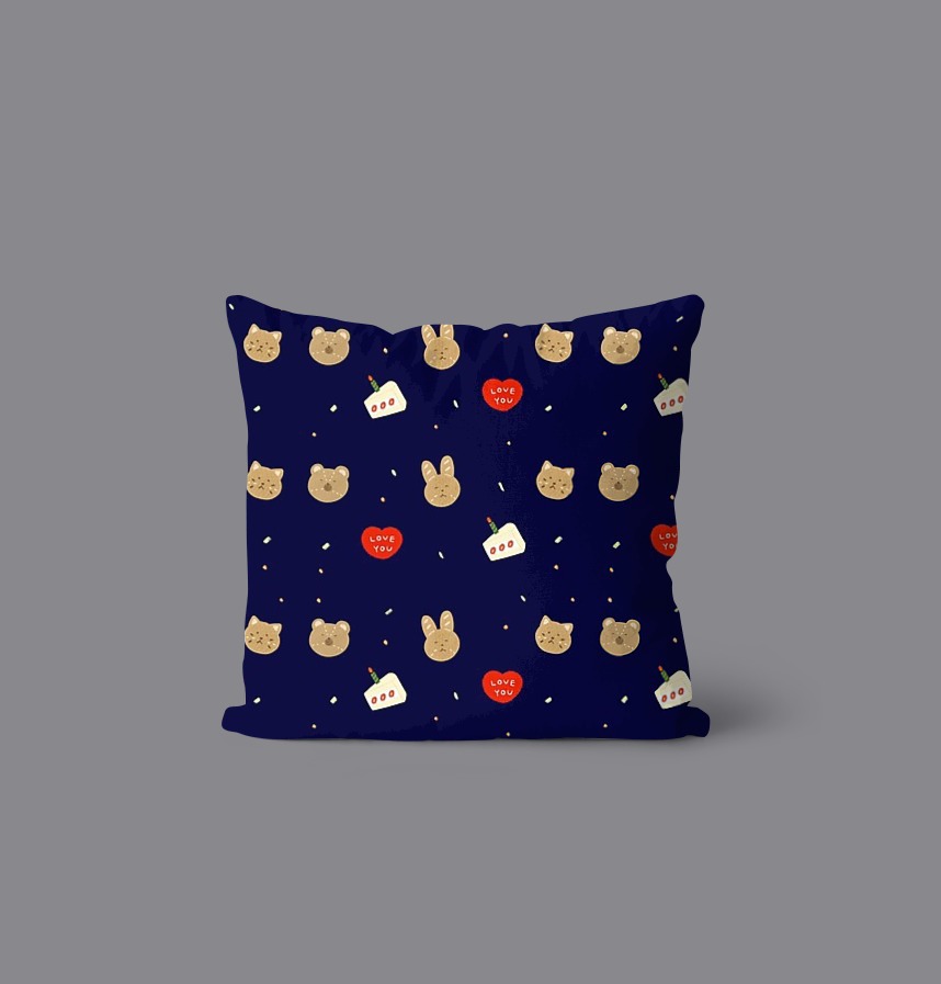 パターン説明 熊、ウサギ、猫のベーカリー人形たちのパーティーという童話的な話を盛り込んだパターンです。