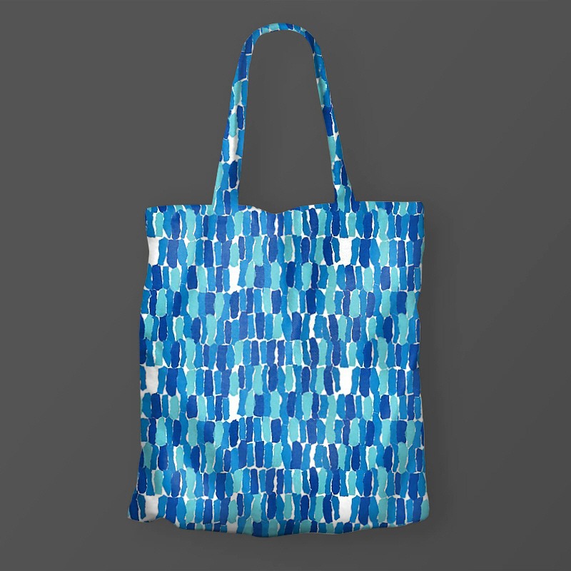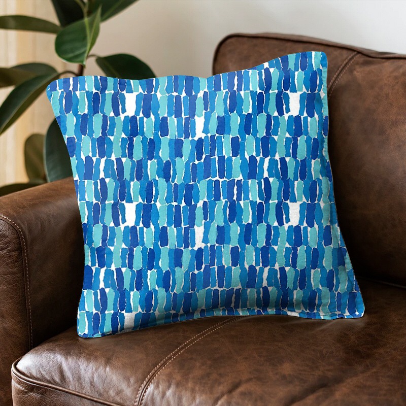 パターン説明 折り紙を四角くちぎって幾何学的に並べました。同じ青、同じ四角でも同じではない。イロイロ。