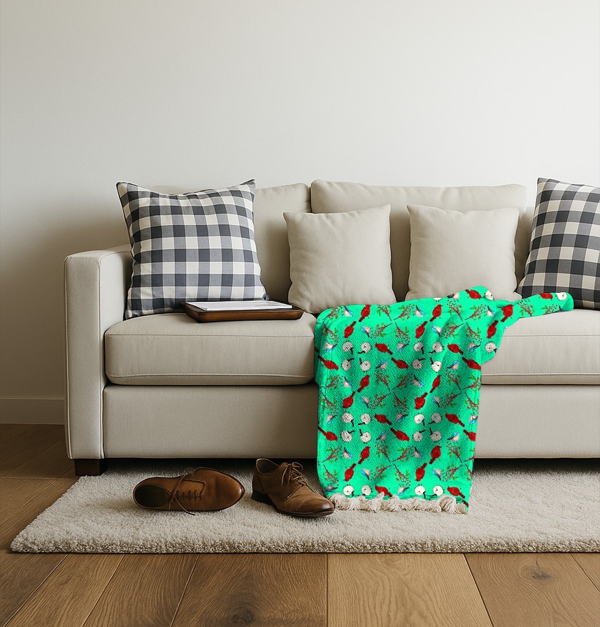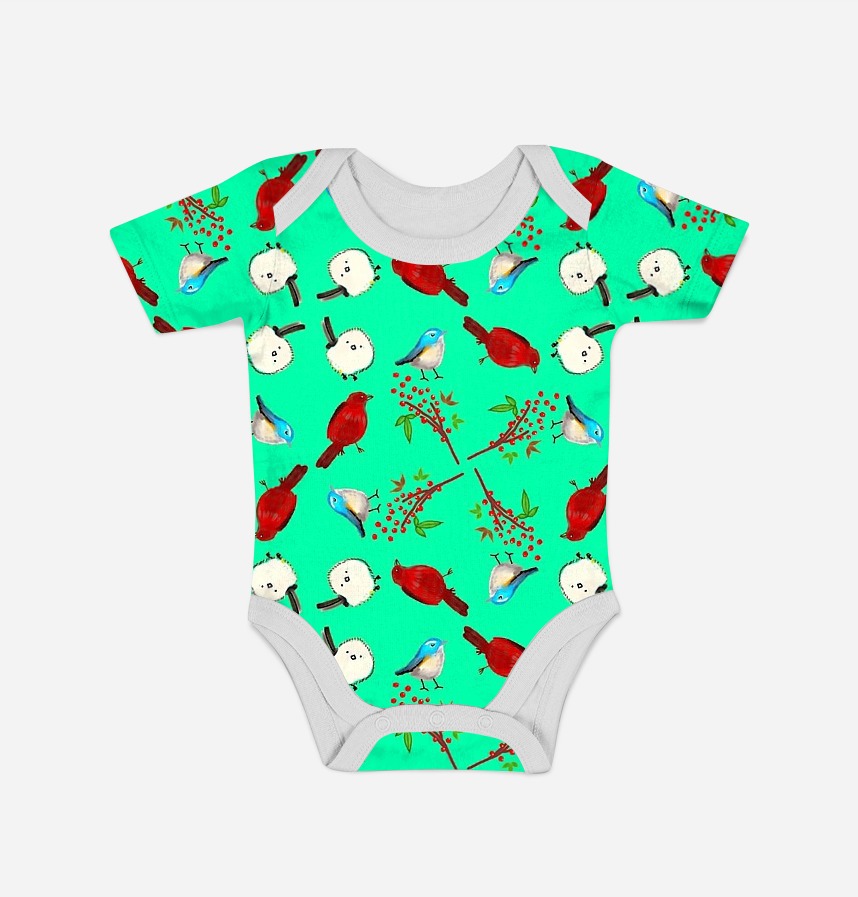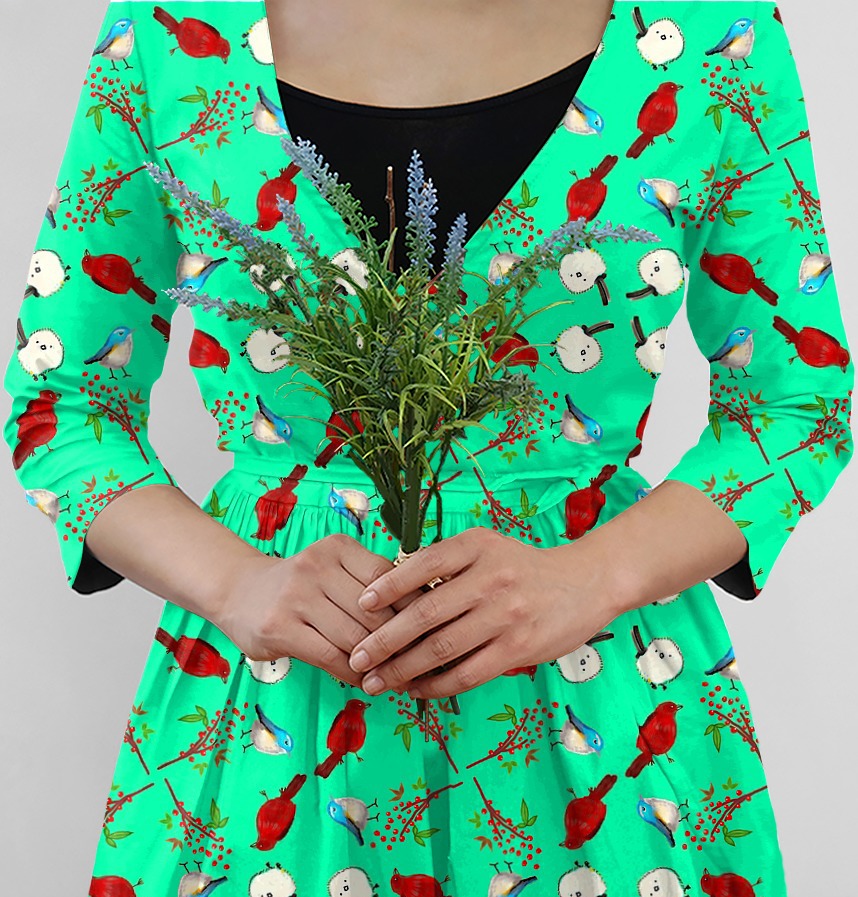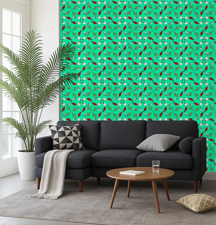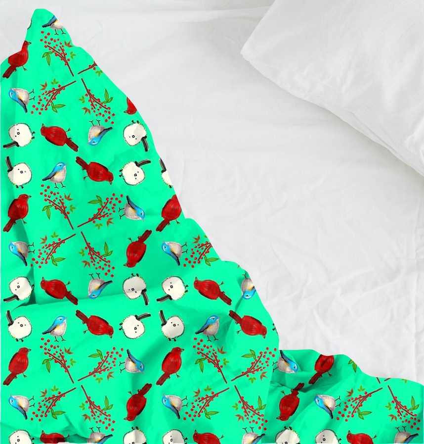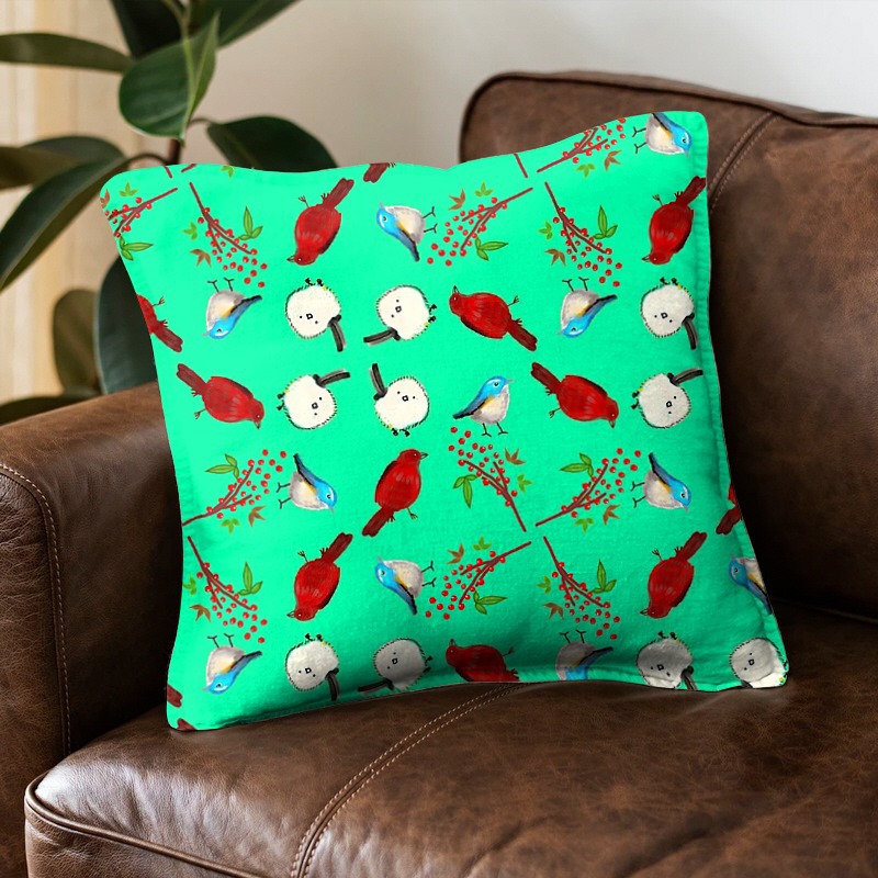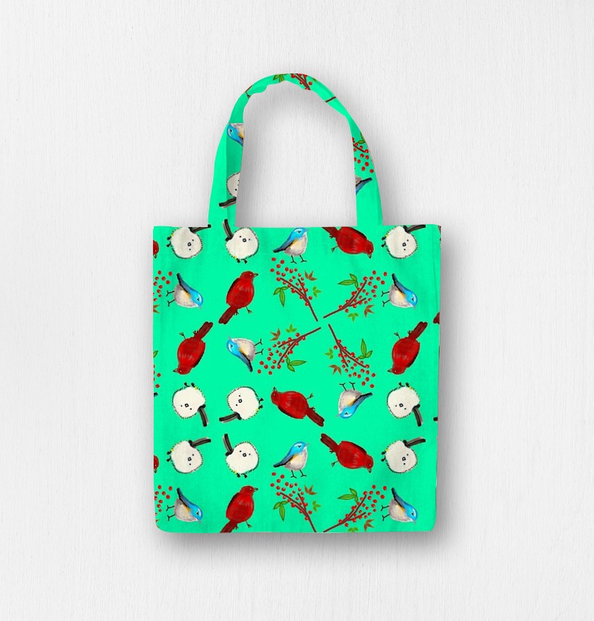 パターン説明 red bird, blue bird, white bird and red berries. 赤い鳥、白い鳥、青い鳥と 南天の実です。