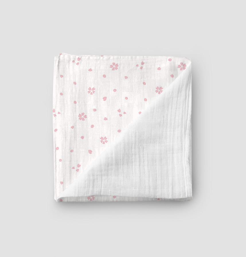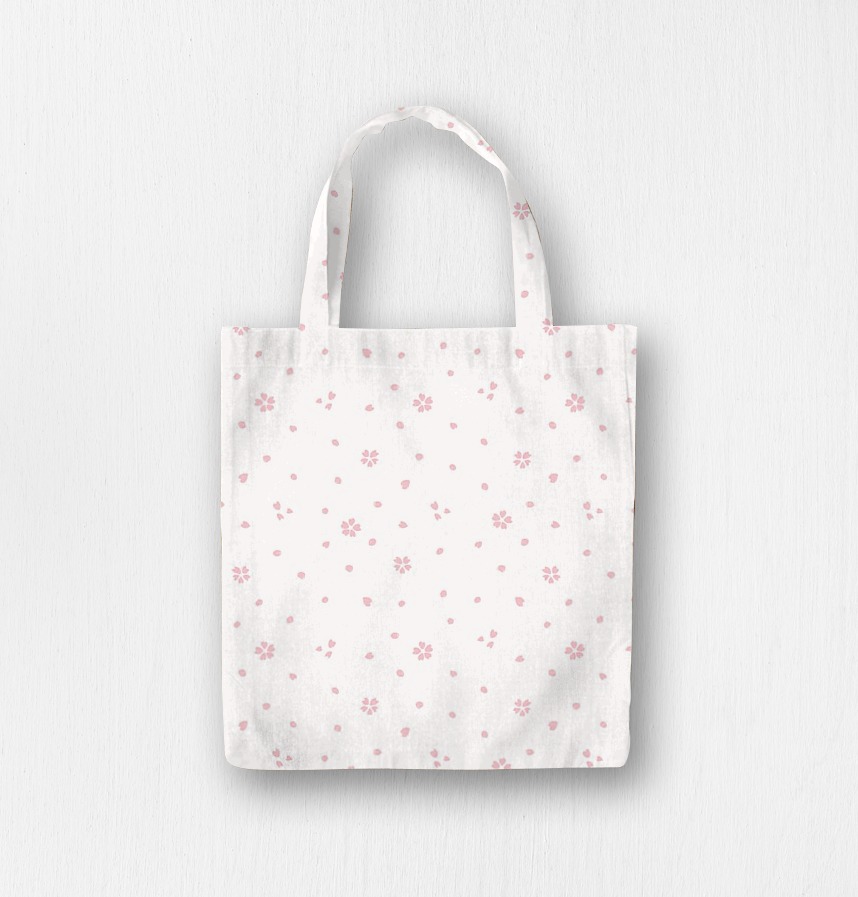 パターン説明 桜の花と花びらとドットを混ぜた水玉模様。花びらがひらひら舞い散るような春の桜パターン。