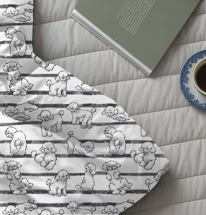 お家にプードルがいる愛犬家です。わんちゃん柄中に描いていこう....