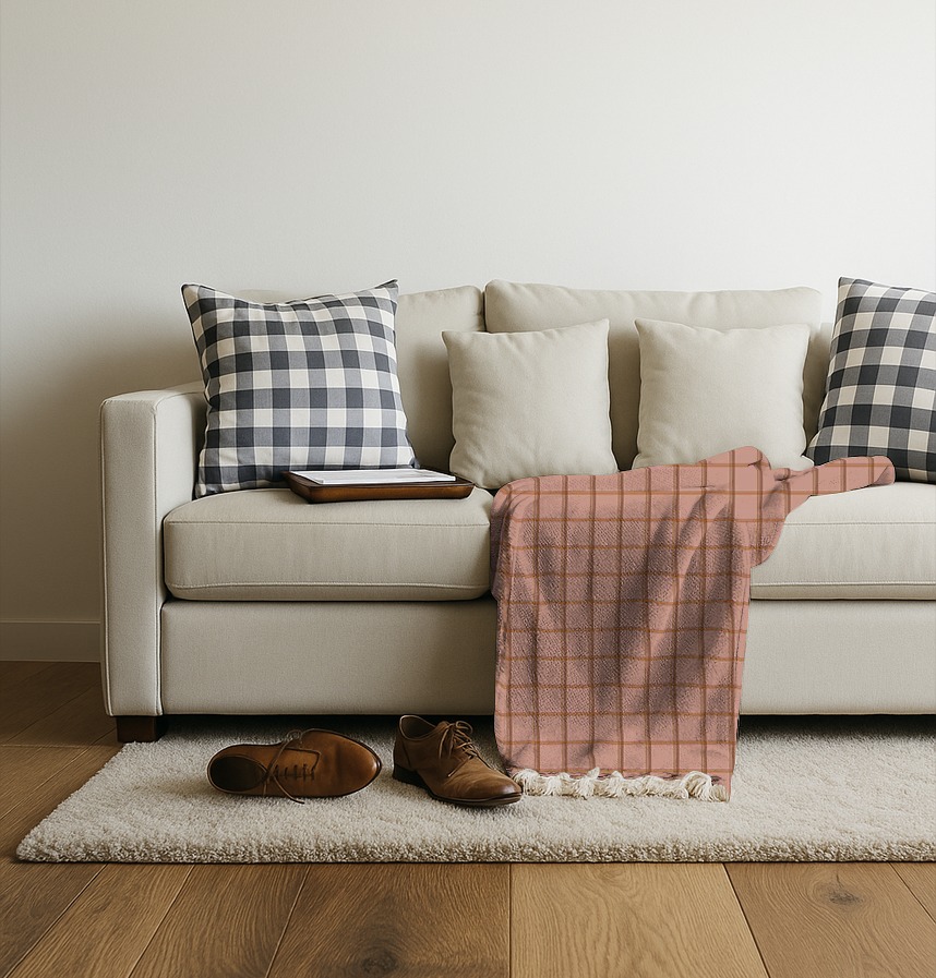 パターン説明 落ち着いた感じのピンクとダークイエローのチェック柄。
