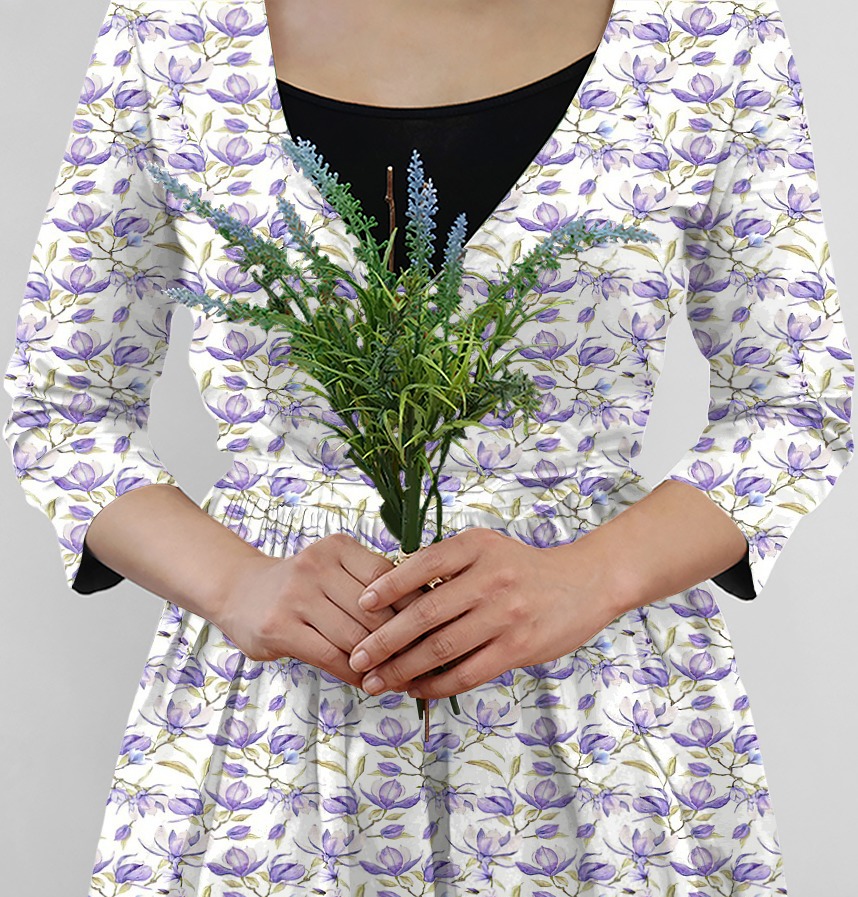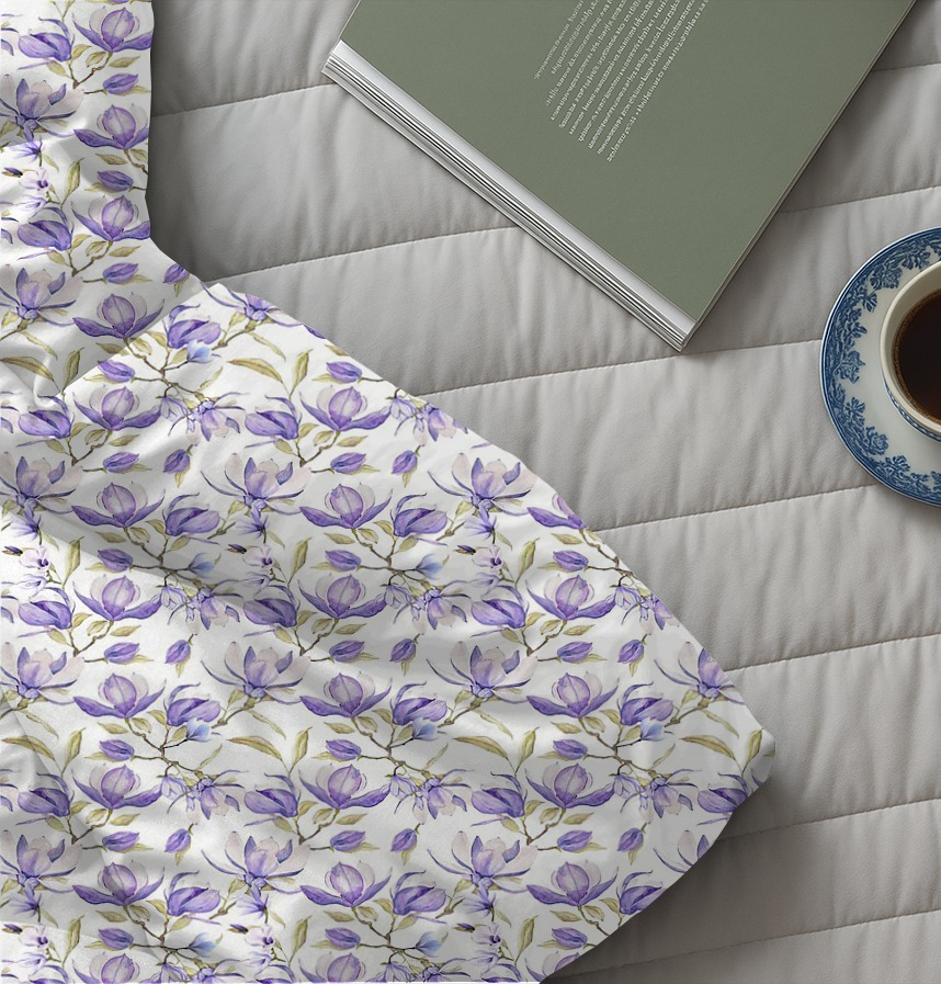 水彩感漂う紫色のマグノリアの美しさを盛り込んだパターン。