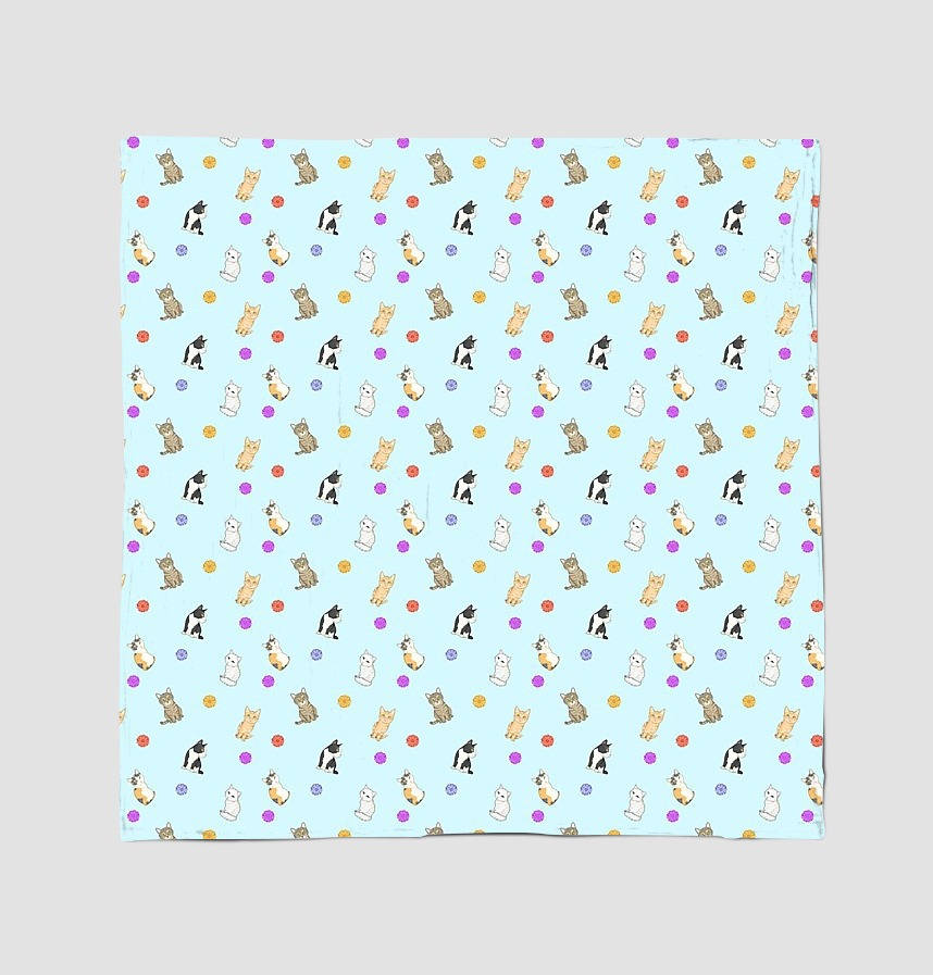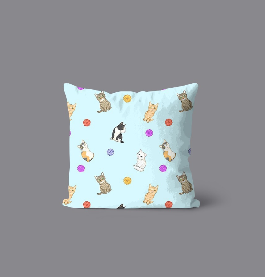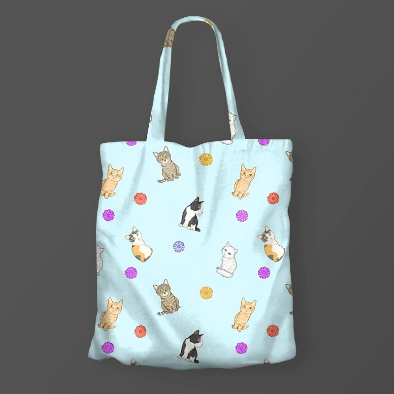 パターン説明 全体にねこ5種と花がデザインされたパターンです。