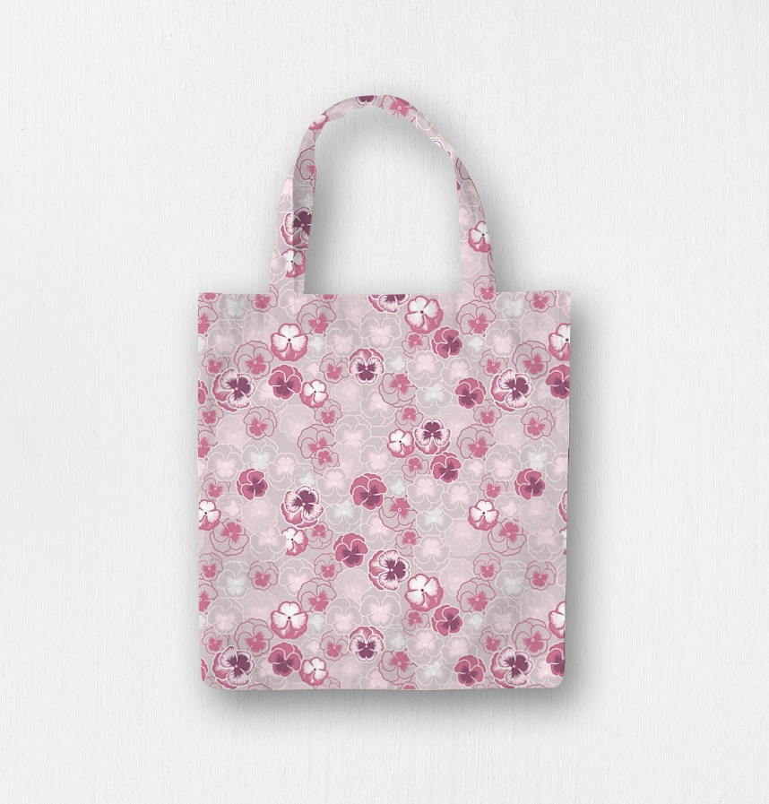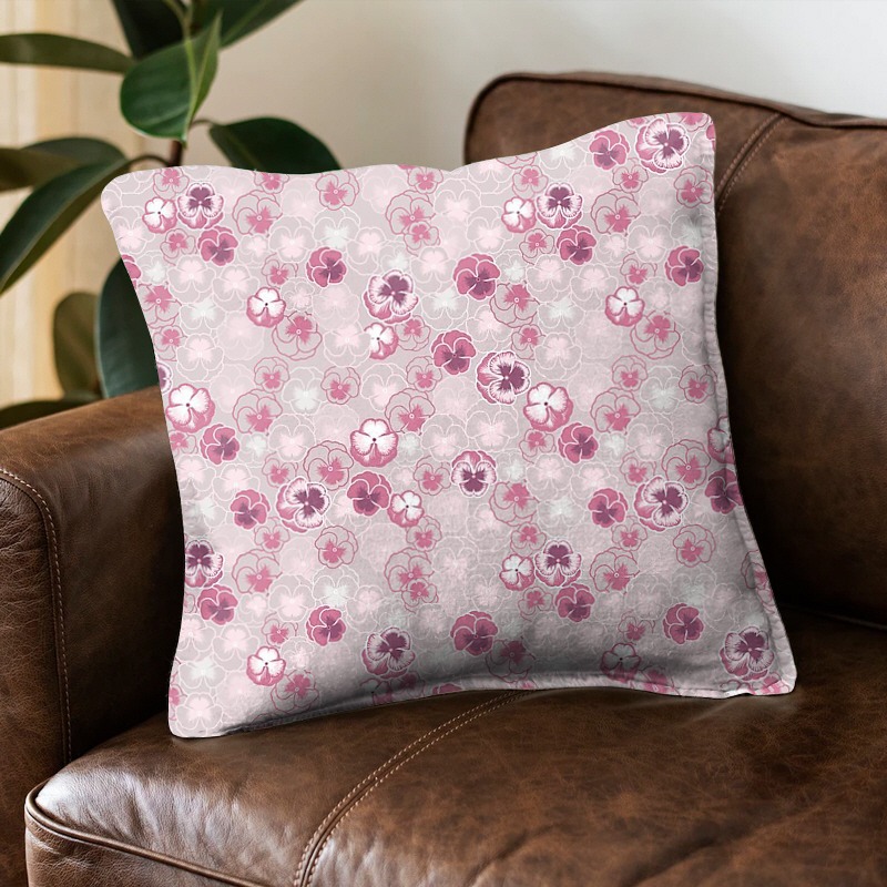 パターン説明 パンジーの花を穏やかに配列し、女性らしいモチーフを作りました。