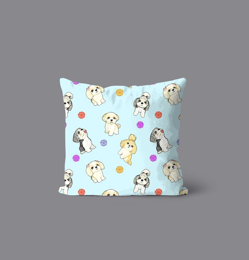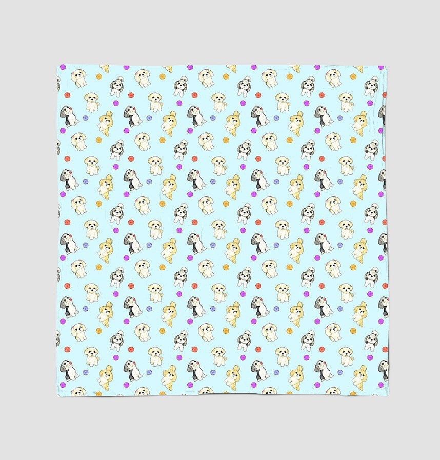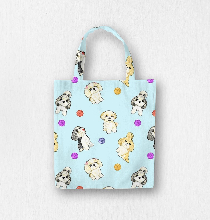 パターン説明 全体にシーズー5種と花がデザインされたパターンです。