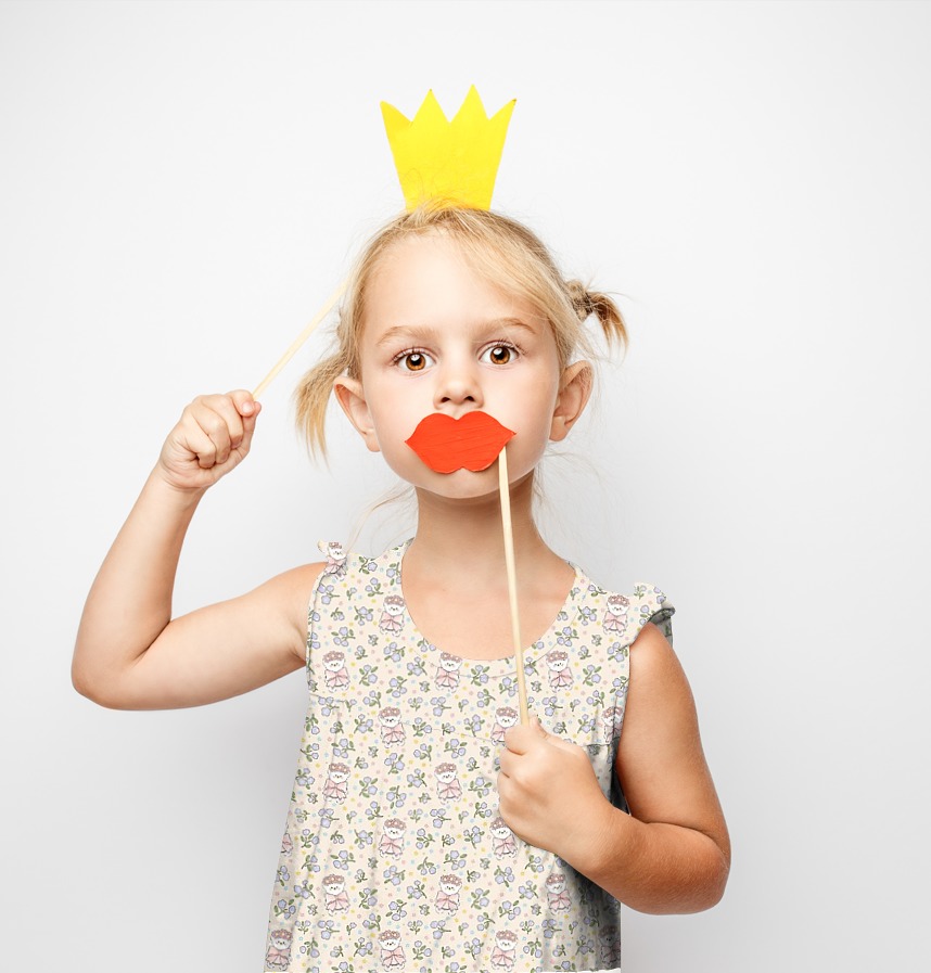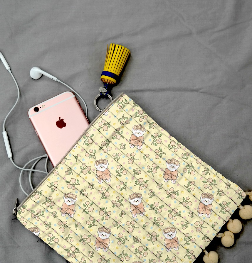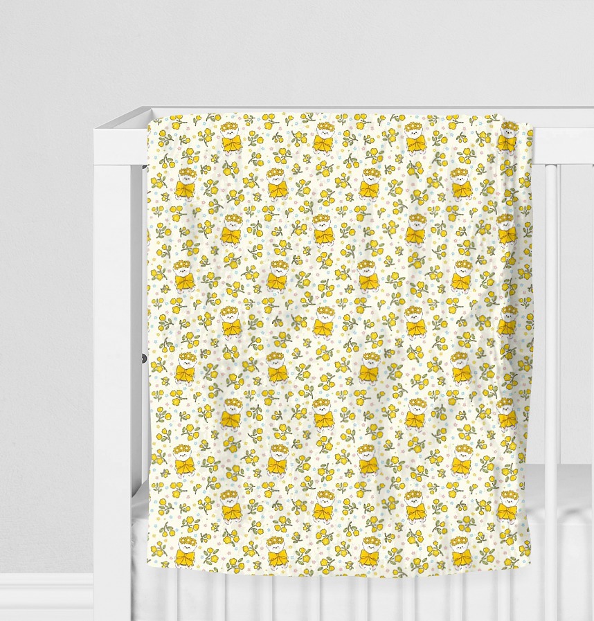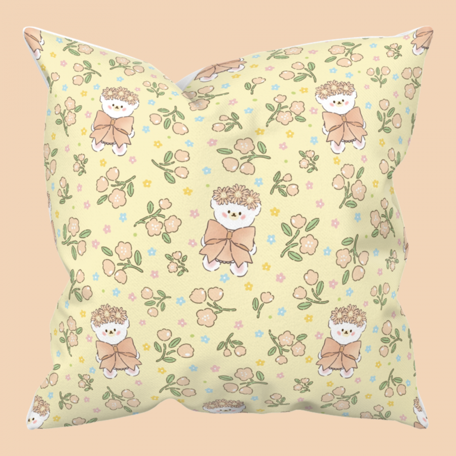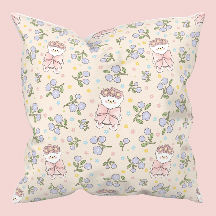 パターン説明 花冠をかぶった愛らしいクマと穏やかな花が調和したハンドメイド感性のパターン