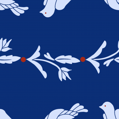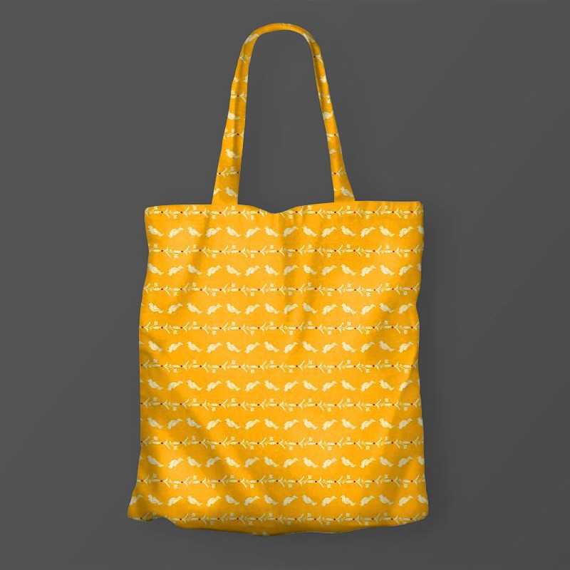 パターン説明 鳥と植物が横に並んだボーダー(横縞)のテキスタイルです。