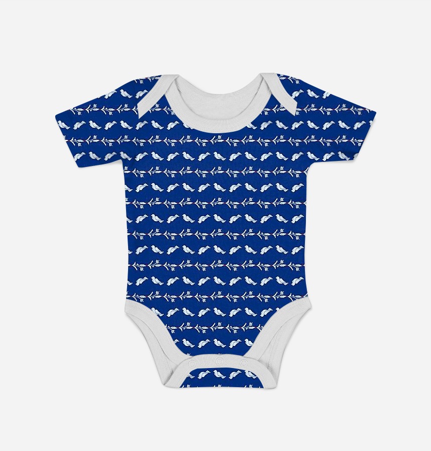 パターン名 鳥と植物のお洒落なボーダーテキスタイル