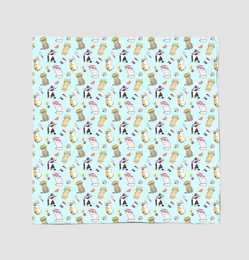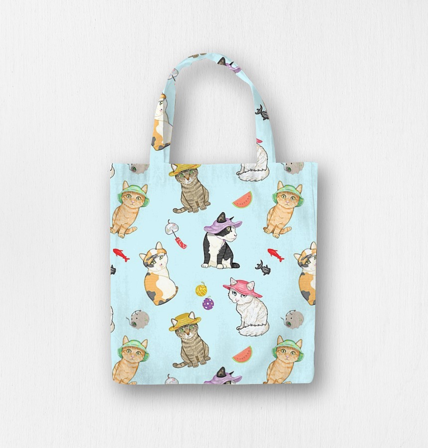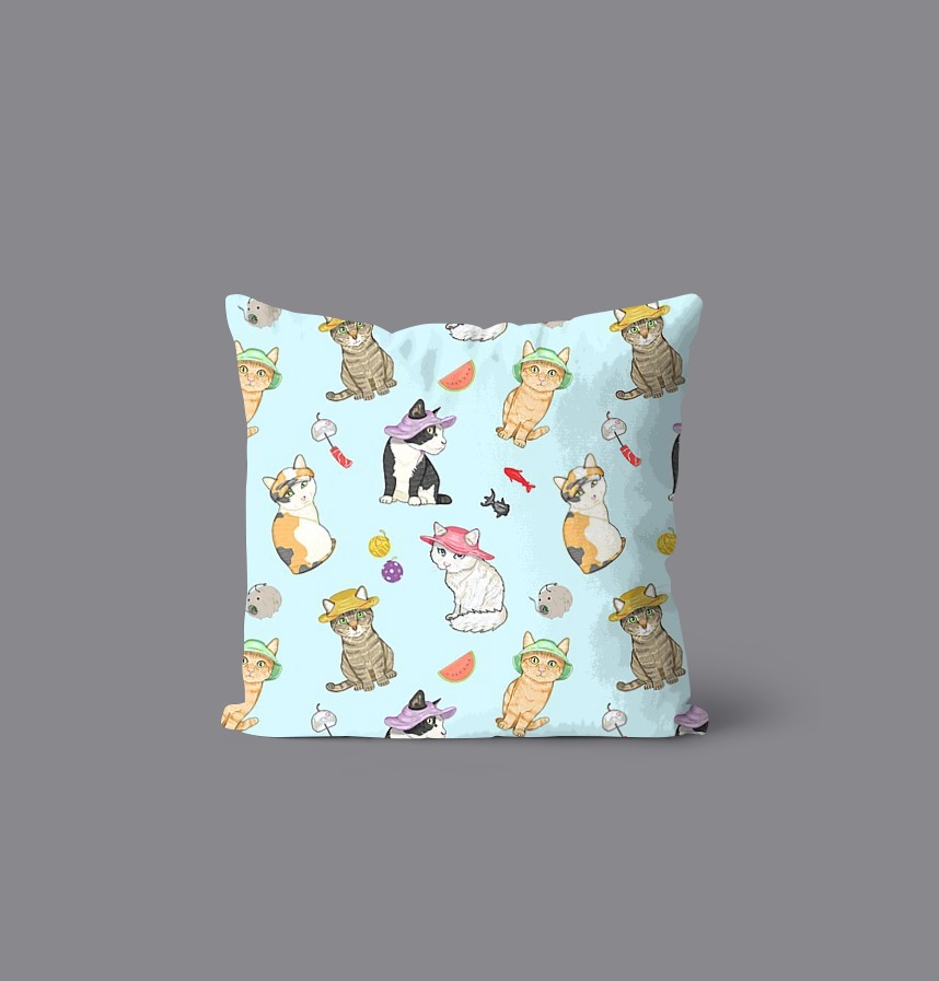 パターン説明 全体にねこ5種と夏をイメージしたものをデザインしたパターンです。