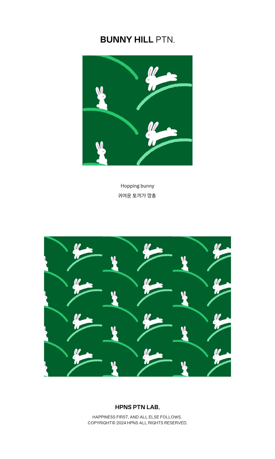 パターン説明 愛らしいウサギがぴょんぴょん跳ね回る丘をイメージしたパターン