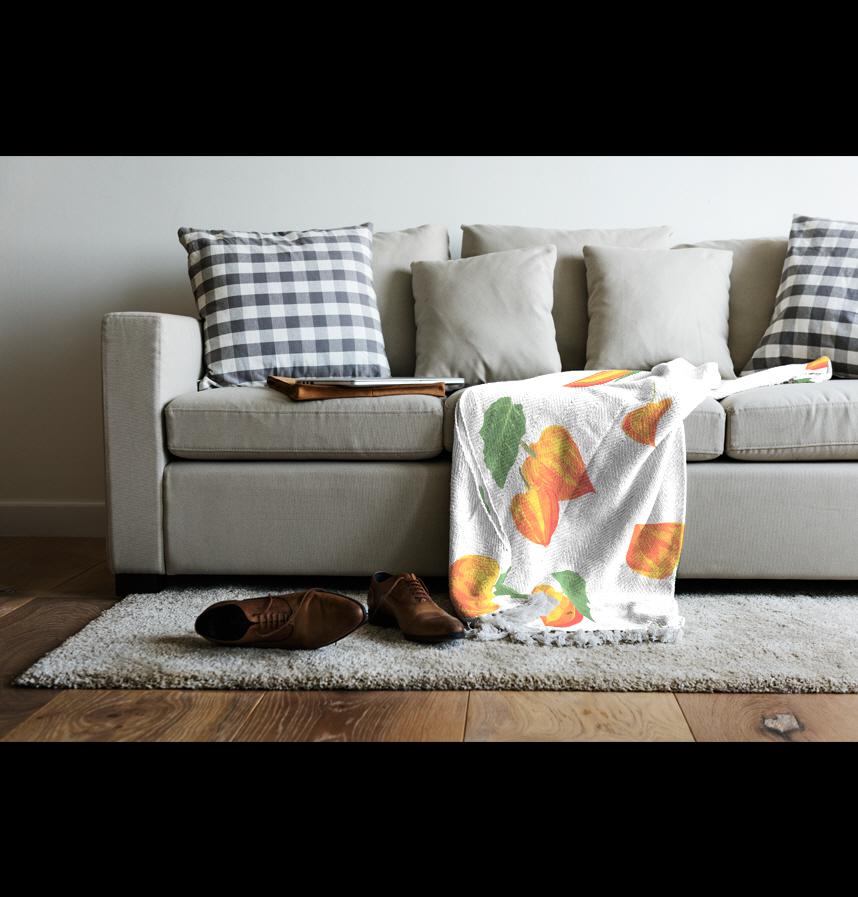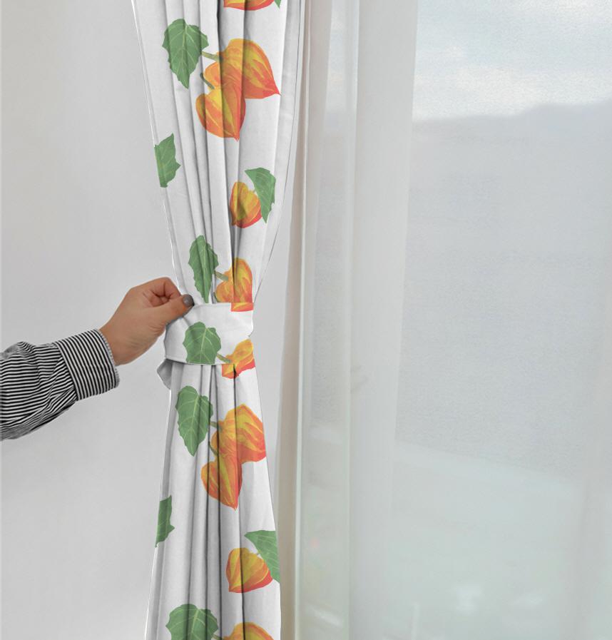 水彩風のほおずきを大柄の模様にしました。布団カバーなどにどうぞ。