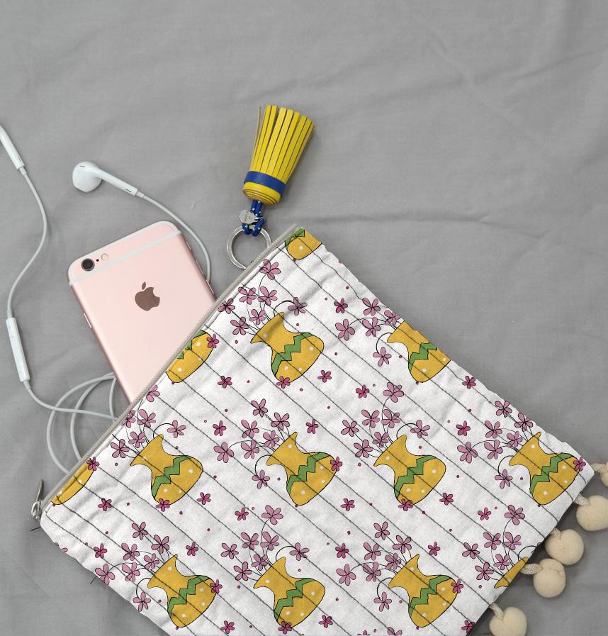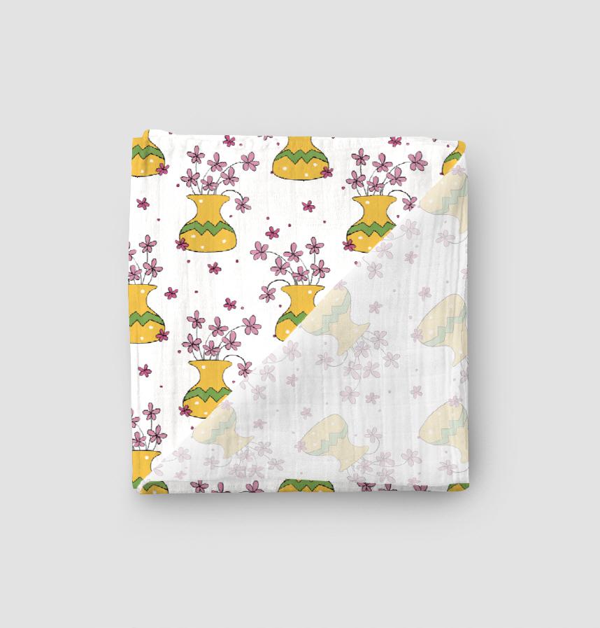パターン説明 黄色い花瓶に入ったかわいい花々のパターン