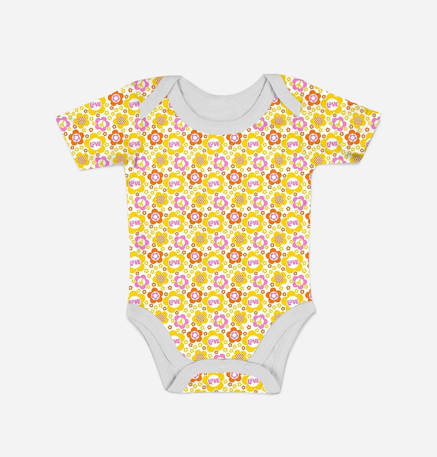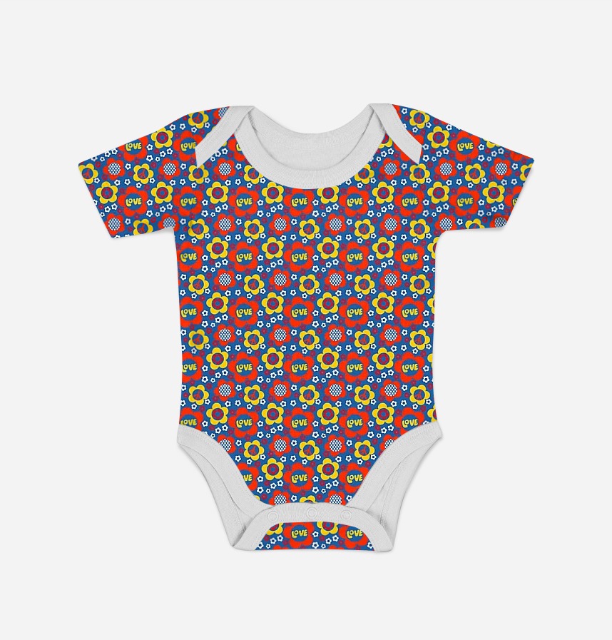 ポップで可愛いネオ昭和の自由な愛に生きるフラワーロマンチカデザインです。