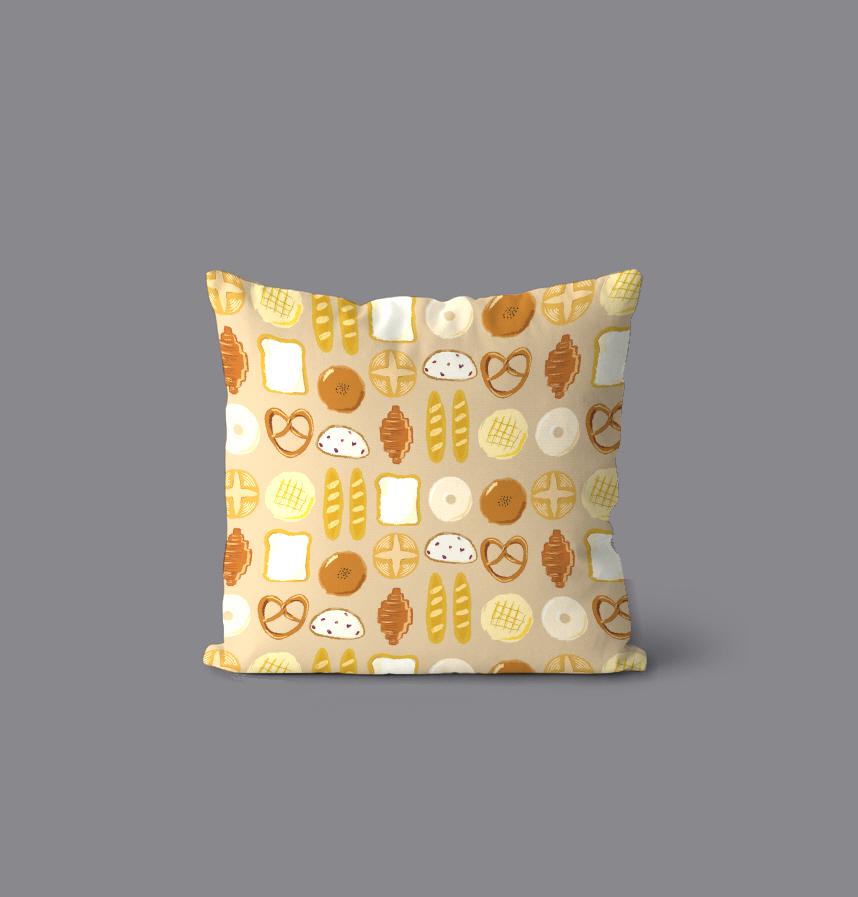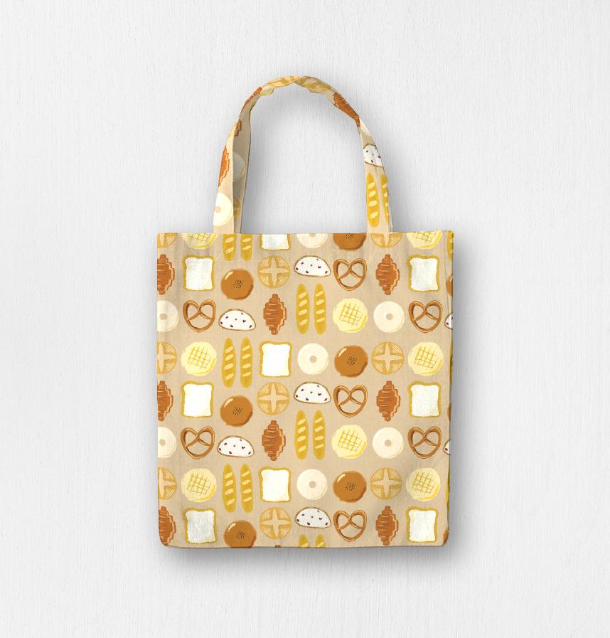 手書きでゆるいパンの総柄生地です。
