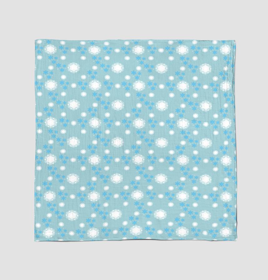 「冬のレース」パターンは、落ち着いた青色の背景の上に白い雪片とレースモチーフが調和したデザインです。このパターンは、冬の清涼感と同時に繊細なレースの美しさを表現します。