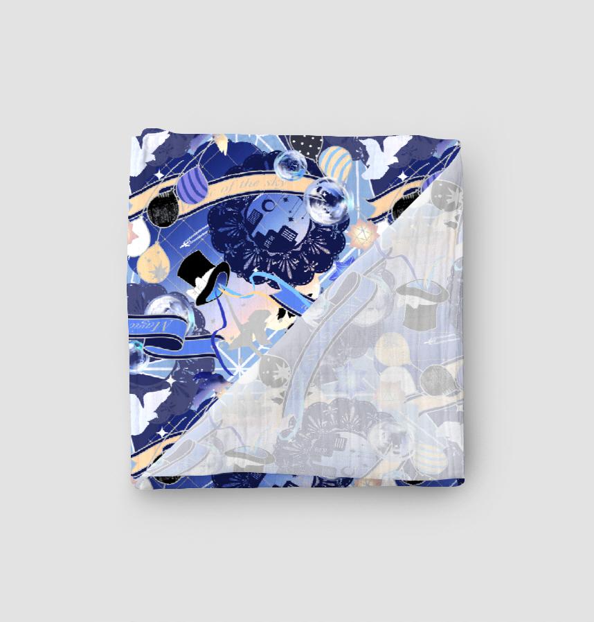 マジシャン等のモチーフに空のグラデーションを落とし込んだ柄です。