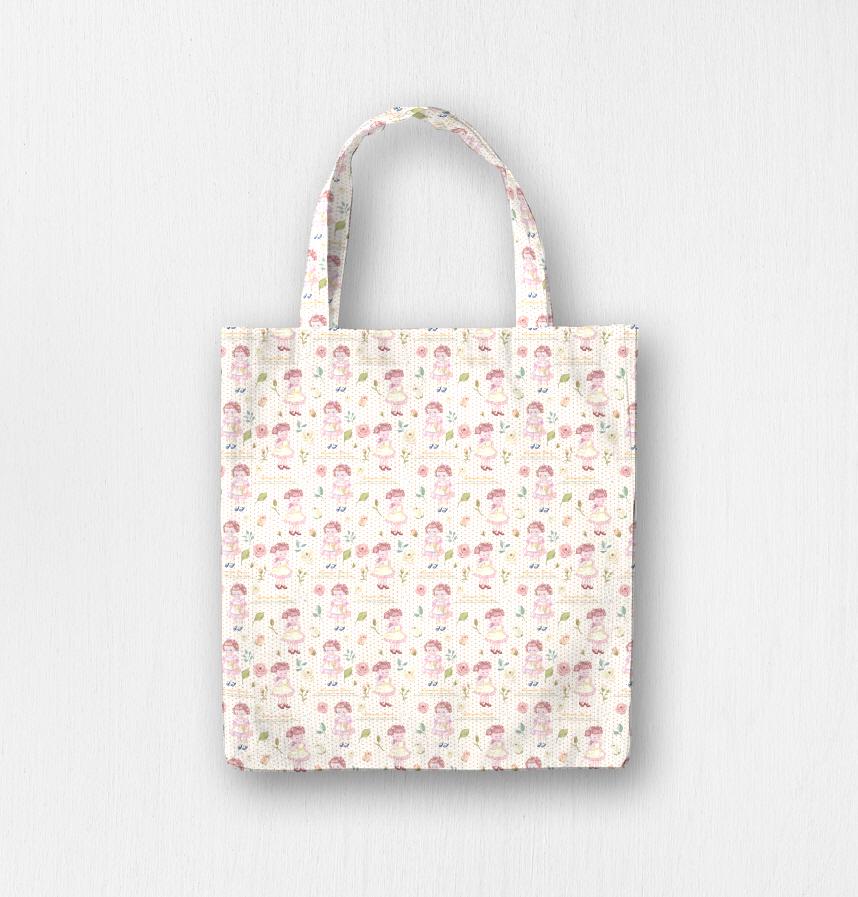 パターン説明 女の子と花がランダムに配置されたデザイン
