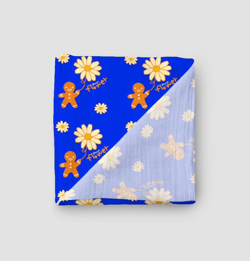 かわいいジンジャークッキーが贈る大きなデイジーの花のプレゼントです。キャンバスの質感が私に表現してみました。赤ちゃんの服や布団、小物などによく合いますよね~!