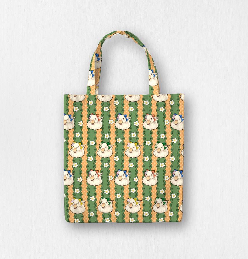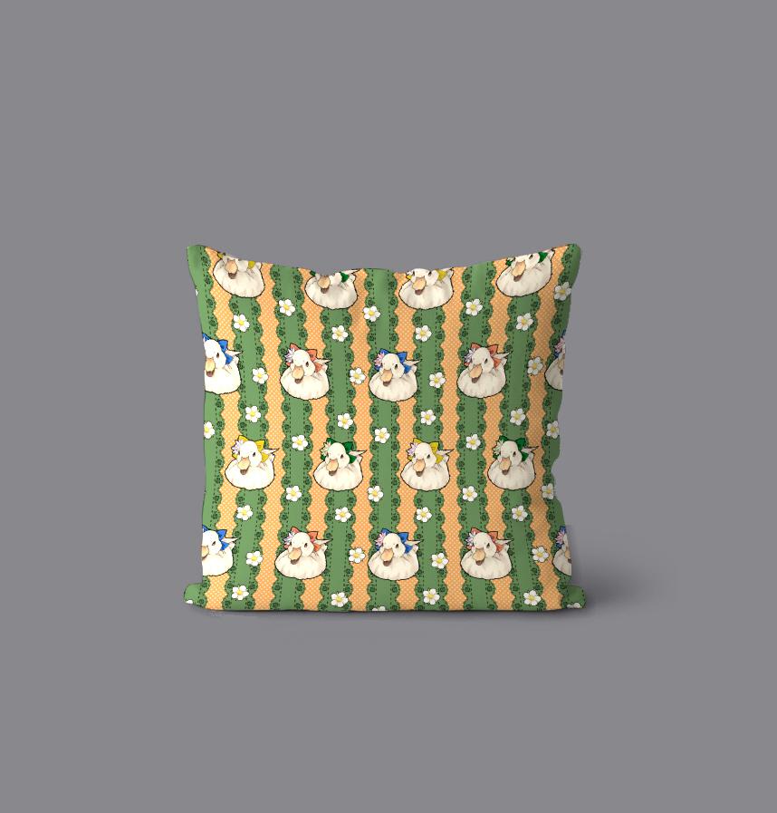 パターン説明 コールダックとレースと小花 緑&オレンジ です。