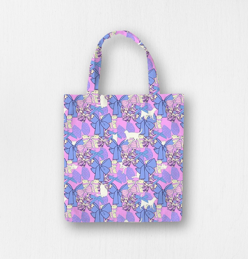 パターン説明 ふわふわと重なり合う、様々形の大きなリボンが一面に広がる中…