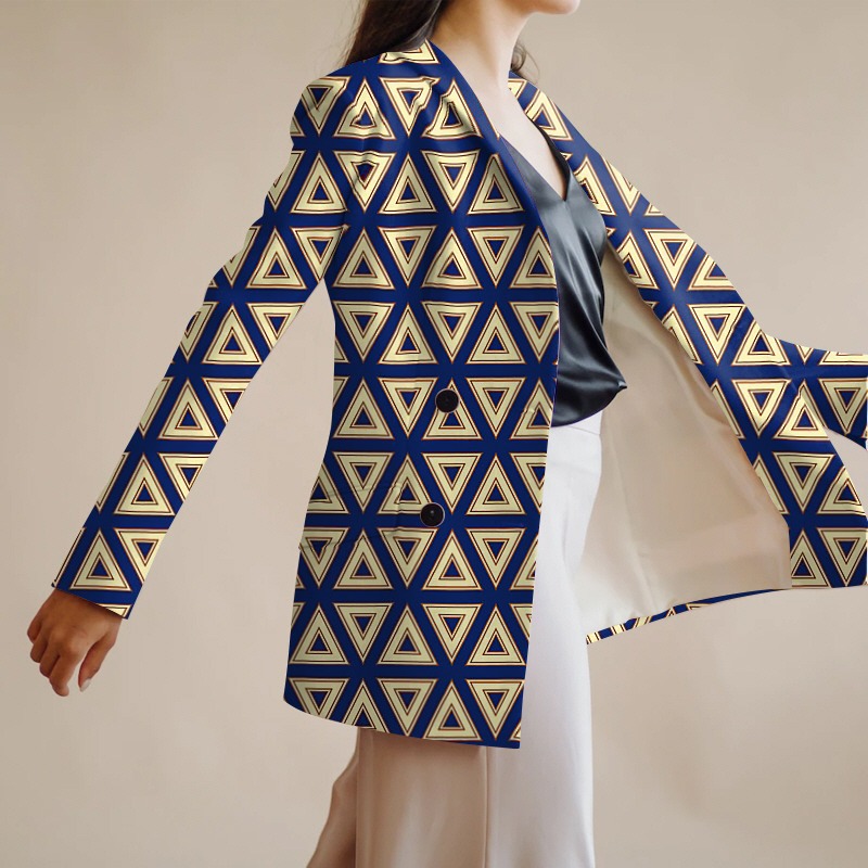 パターン説明 三角形モジュールが隙間なくつながって表面を満たすテッセレーション方式で構成されている。 上を向いた三角形と下を向いた三角形が交差配置され単調さを避け視覚的変化を提供し、繰り返される構造は無限に拡張可能な特性を持つ。 三角形内部の幾重にも輪郭線は空間を細分化して層位と深さを加え、全体的に秩序とリズムを同時に強調する構造的パターン