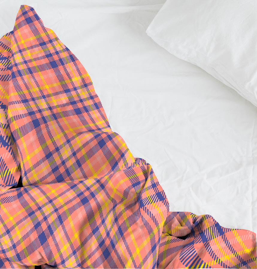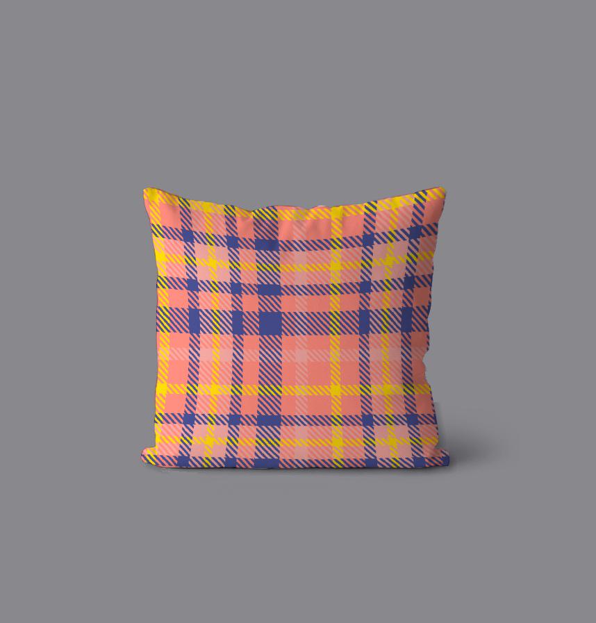 パターン説明 ピンク×ブルーのフェミニンなタータンチェック