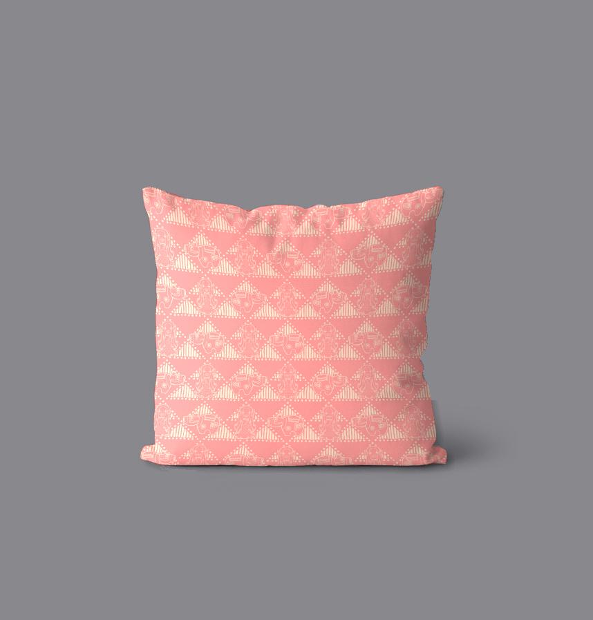 パターン名 アマビエと赤べこ 鱗紋 サーモンピンク
