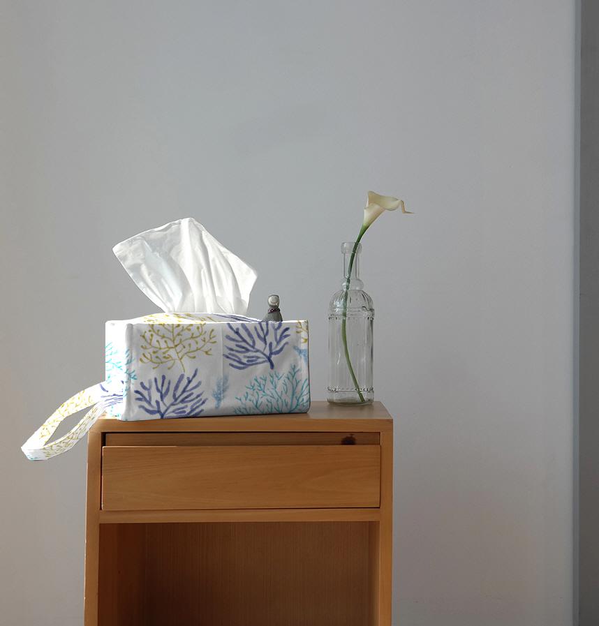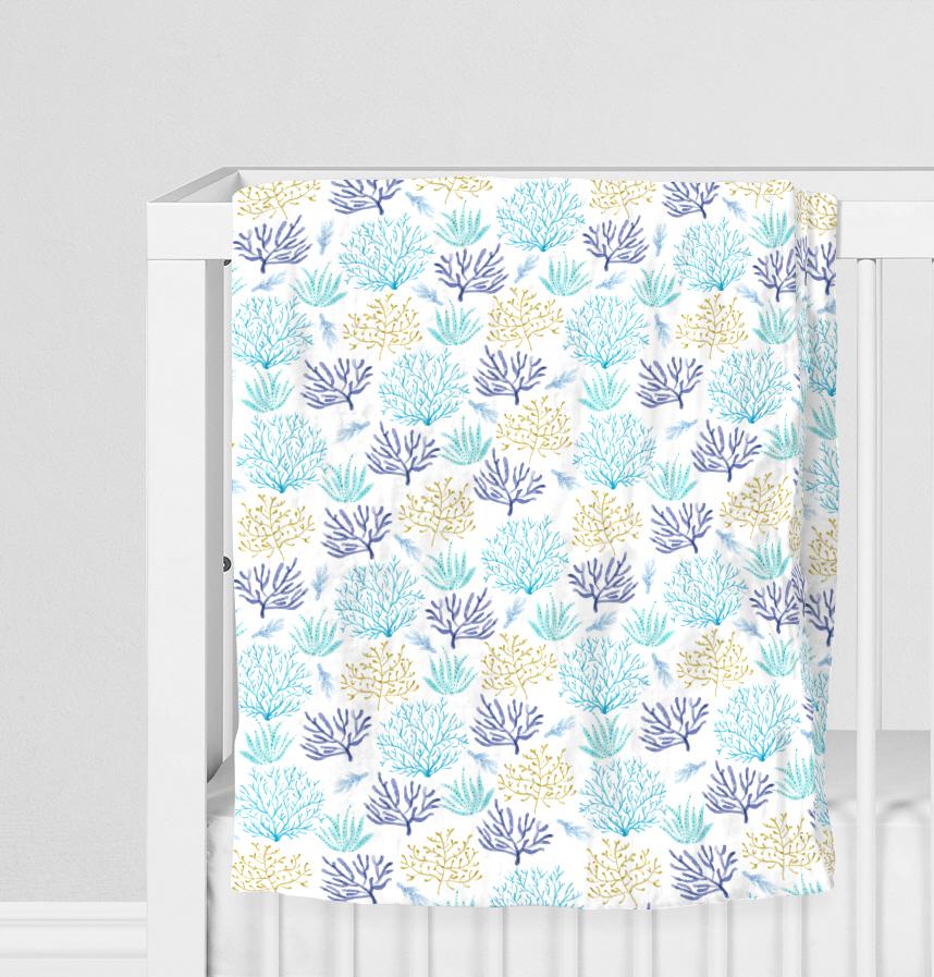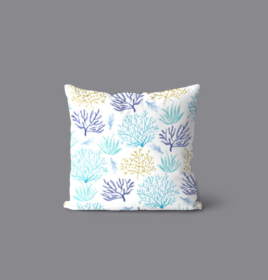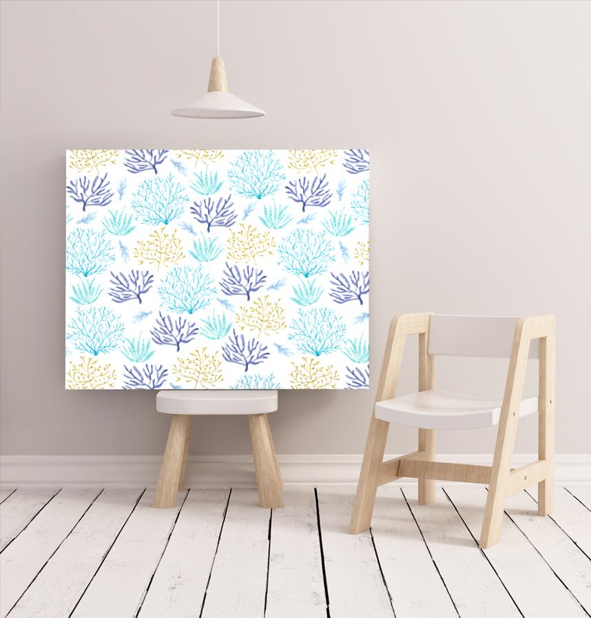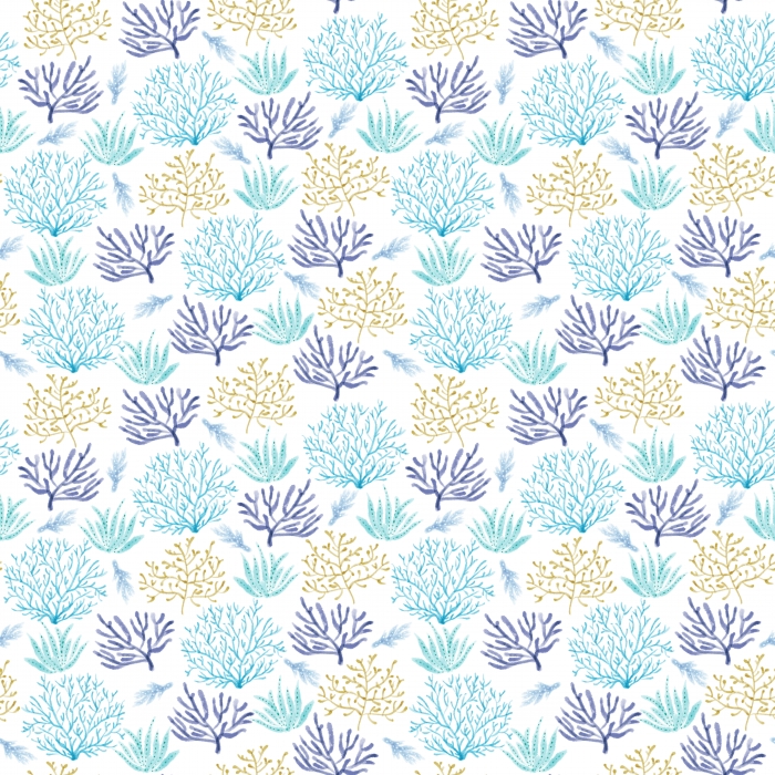 手描きで描いた珊瑚を散りばめた、海を感じるパターン。