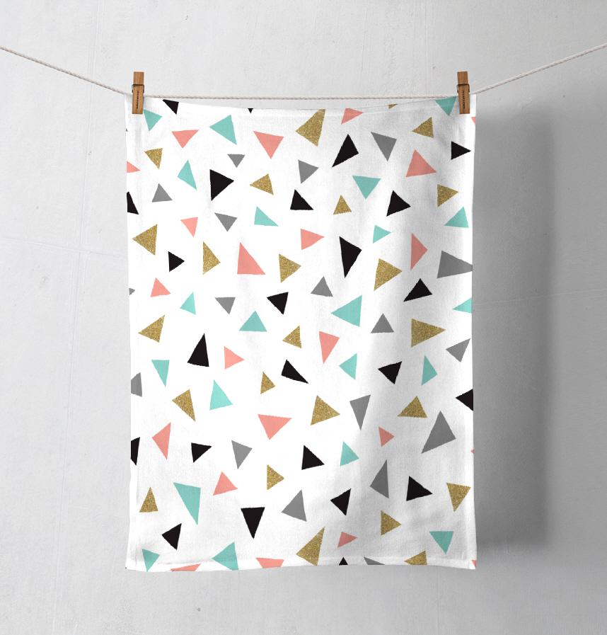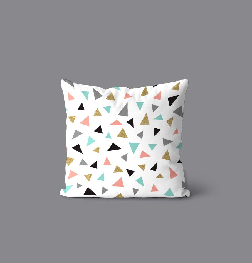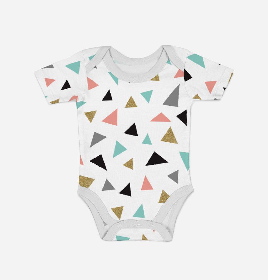 絶妙に形の違うトライアングルをちりばめた、ポップかつモードな雰囲気のパターン。