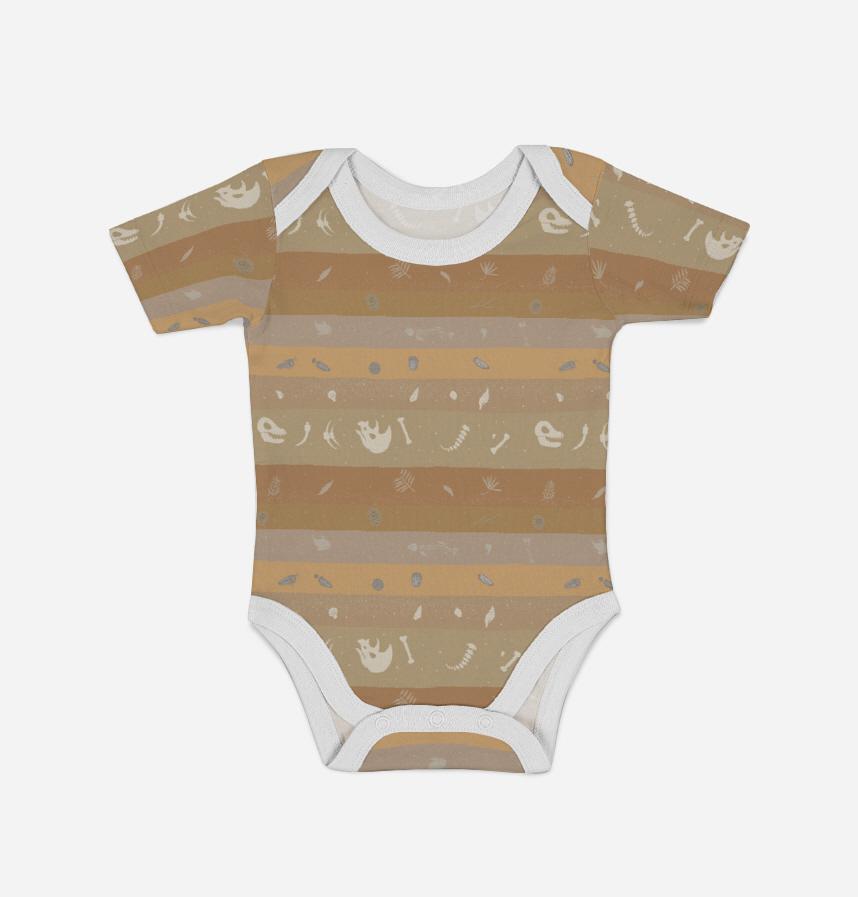 地層をイメージした手書きボーダーに様々な化石を描きました。