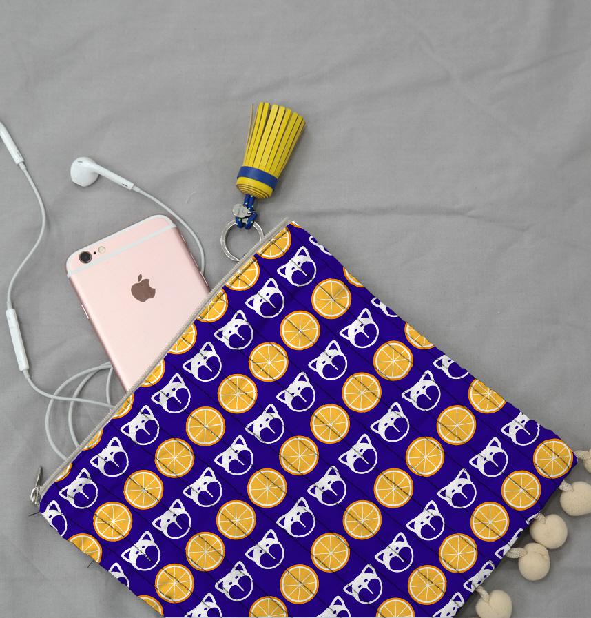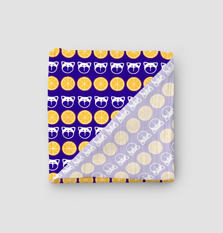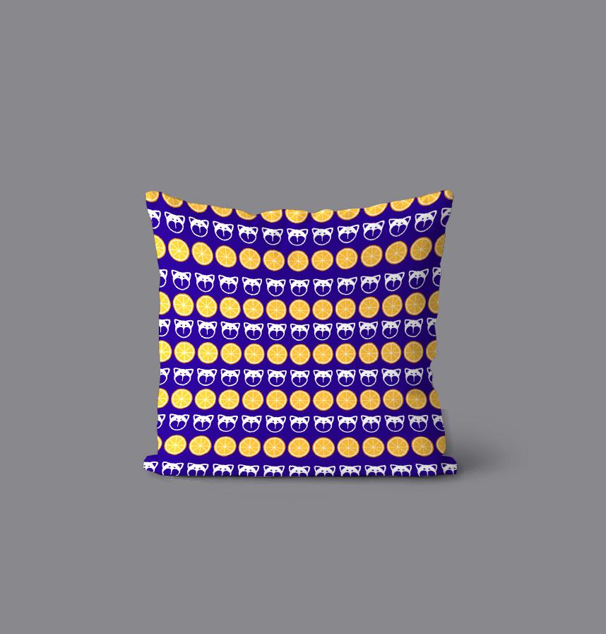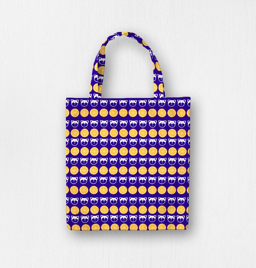 パターン説明 柴犬の顔風モチーフとオレンジの輪切りを一面に配置しました