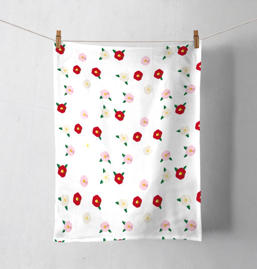 パターン説明 椿の花をランダムに配置したシームレスパターン