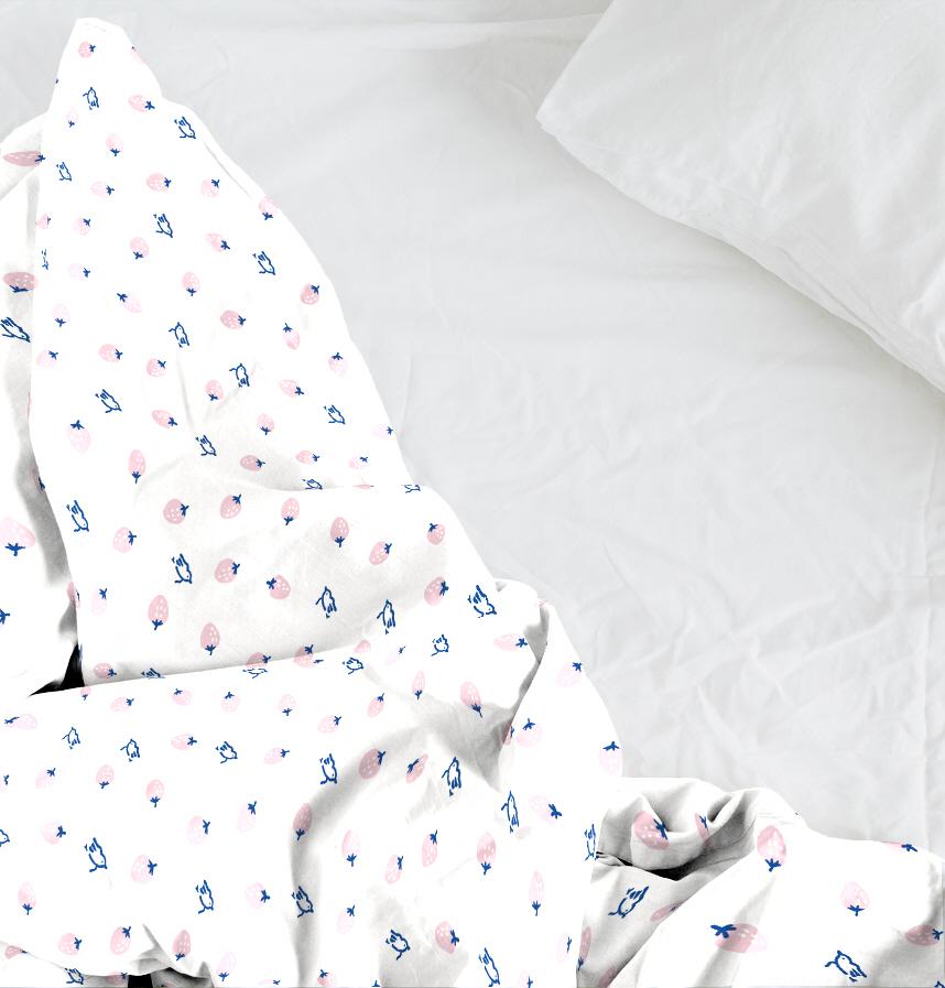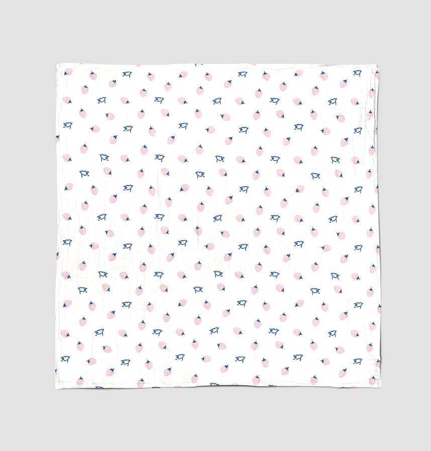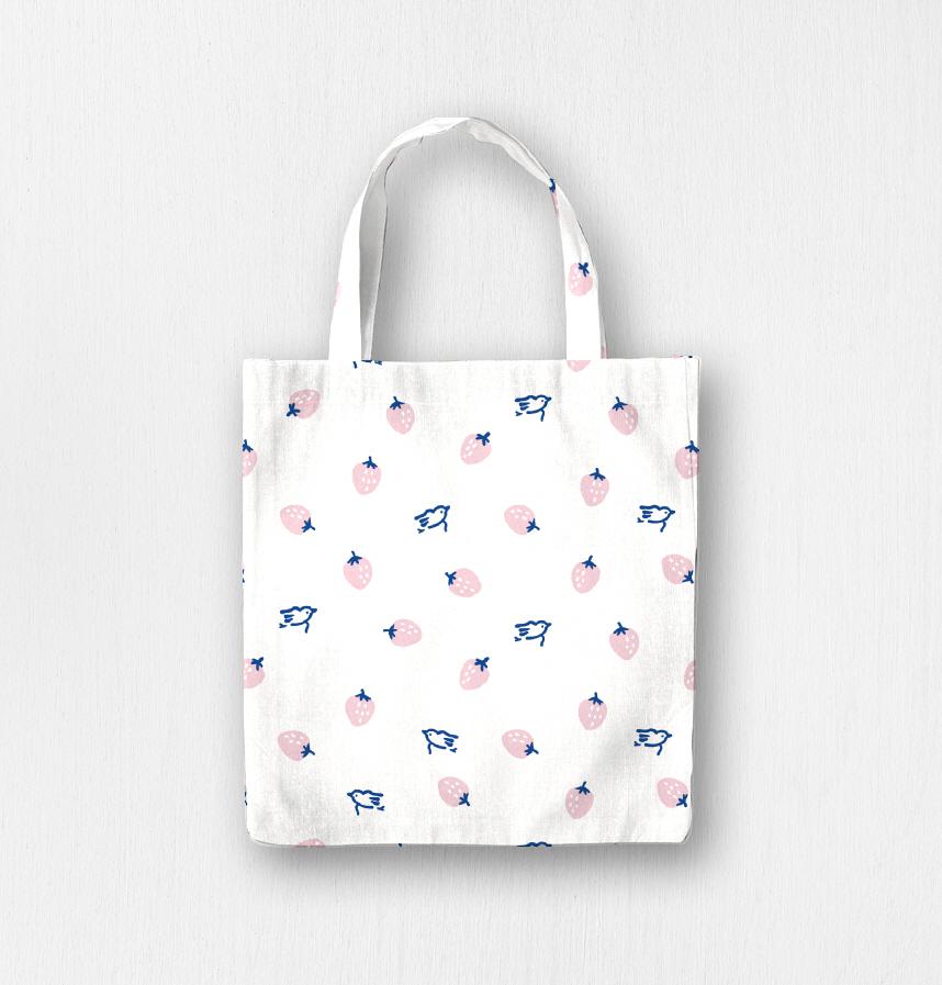 シンプルかわいいイチゴと幸せの青い鳥の柄